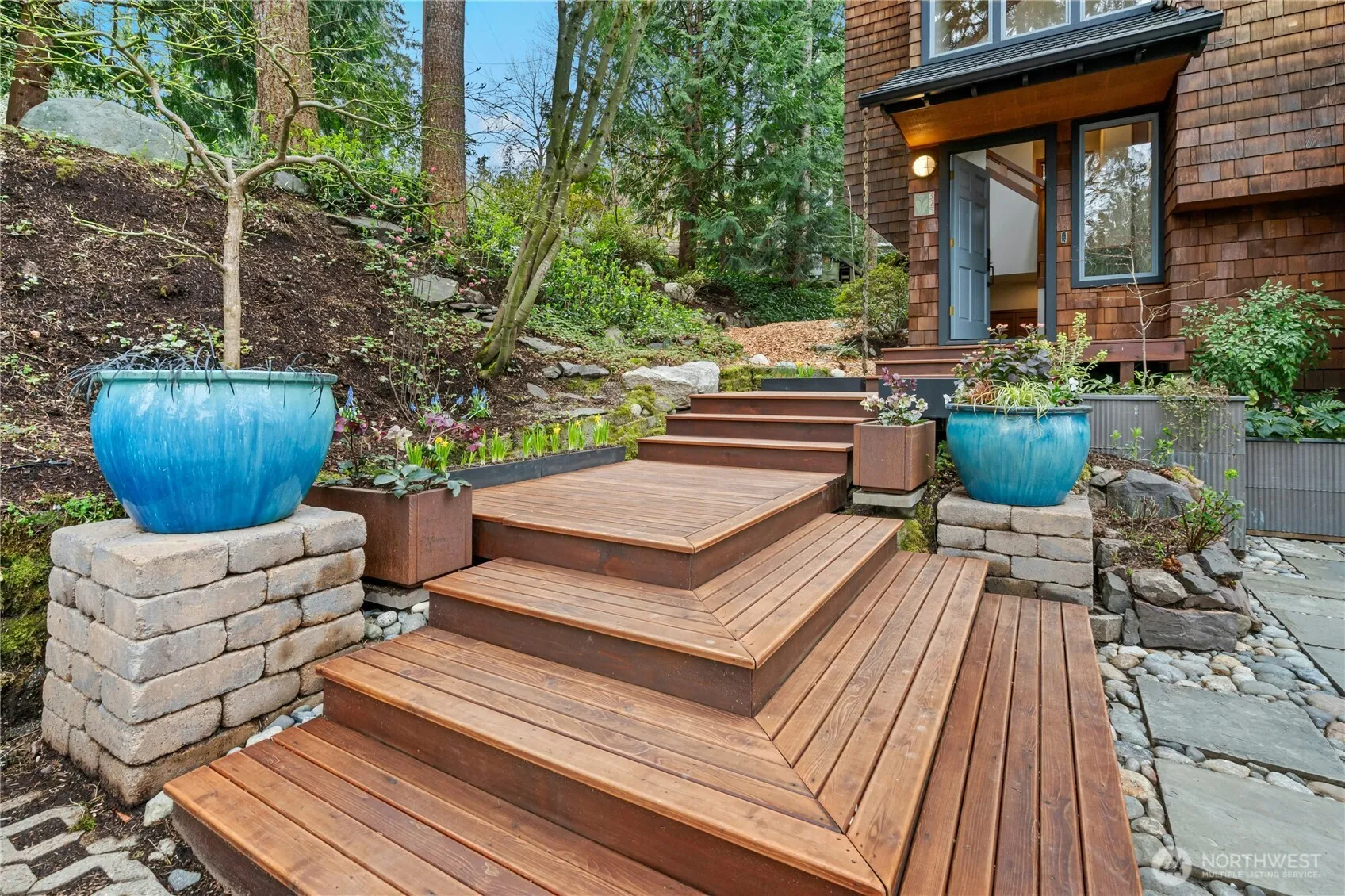 Tucked gracefully among the evergreens of Squak Mountain, this custom-built, treehouse-inspired residence offers an extraordinary sense of retreat just moments from downtown Issaquah. With 3 bedrooms, 2.25 baths, and 1,980 square feet, the home is defined by soaring ceilings and dramatic walls of windows that invite in natural light and tranquil forest views at every turn. Rich, organic finishes – shingle siding, clear fir six-panel doors and detailed millwork, tile and cork flooring – create a warm yet refined Northwest aesthetic.The signature kitchen, thoughtfully designed by Richard Landon, blends artistry and function with premium Brazilian cherry cabinetry, a substantial island, and custom-made glass door accents. French doors open to a wisteria-draped deck, an enchanting setting for quiet mornings or elegant summer gatherings.A matching detached outbuilding provides versatile space for a private office, studio, playhouse or extra storage. Lush landscaping, Pennsylvania Bluestone patios and meandering pathways enhance the home’s secluded feel, while shops, dining, the library, Village Theatre, and the Salmon Hatchery remain walking distance away – offering a rare balance of sanctuary and sophistication. Home has been pre-inspected.