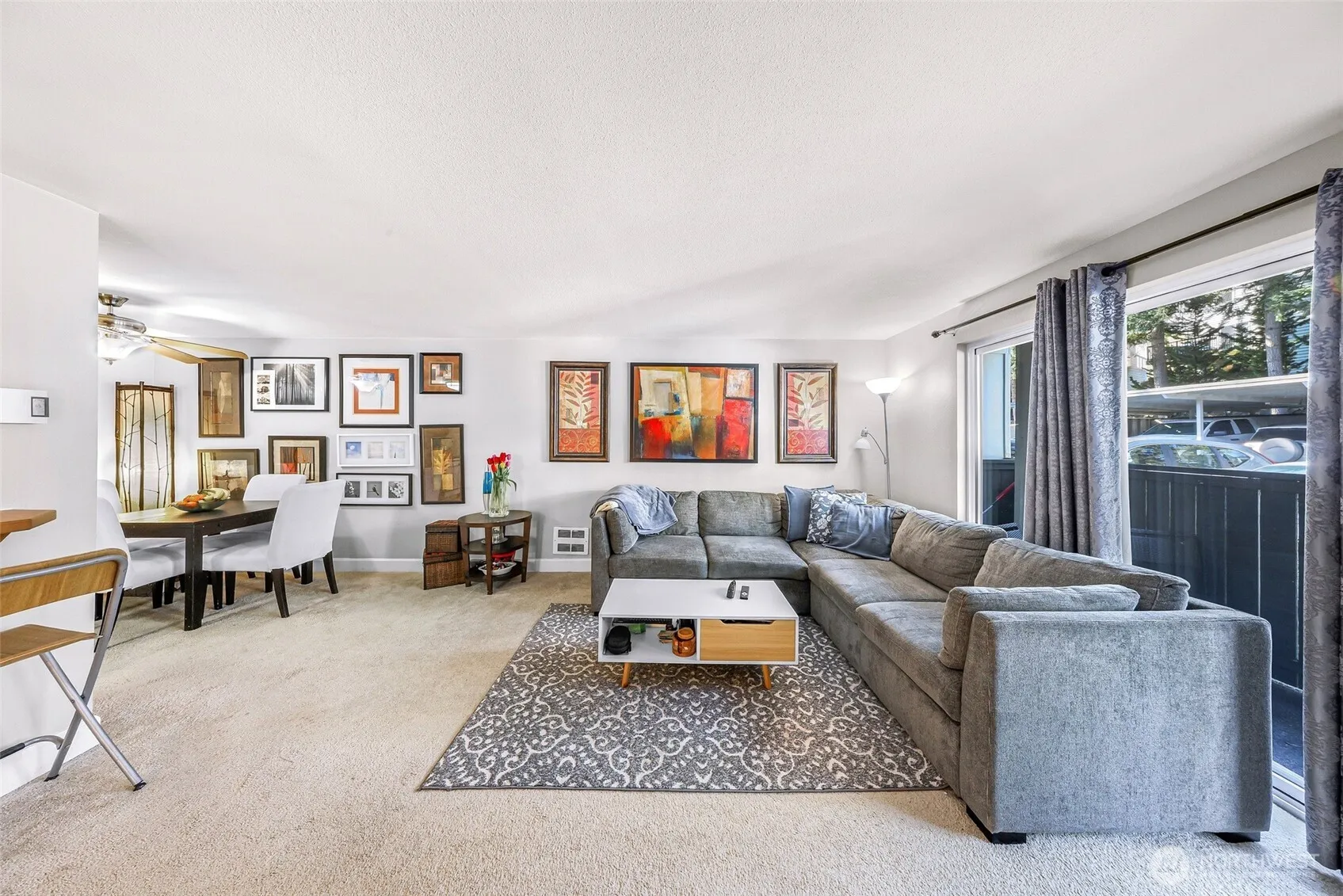 Soak up the best of both worlds—relaxation and convenience. This inviting condo features access to a community pool just in time for warmer days, offering the perfect place to unwind, recharge, and enjoy a little sunshine right at home. A grassy play area adds even more space to relax and connect. Inside, this well-appointed 1 bed, 1 bath ground-floor unit offers 729 sq ft of comfortable living, complete with maple cabinets, tile backsplash, and a convenient in-unit laundry and pantry. Beyond the poolside perks, you’ll love the easy, commuter-friendly location. With quick access to nearby bus lines, light rail connections, ferry routes, and major highways, getting where you need to go is simple and efficient. Secured entry, storage unit, and assigned parking.