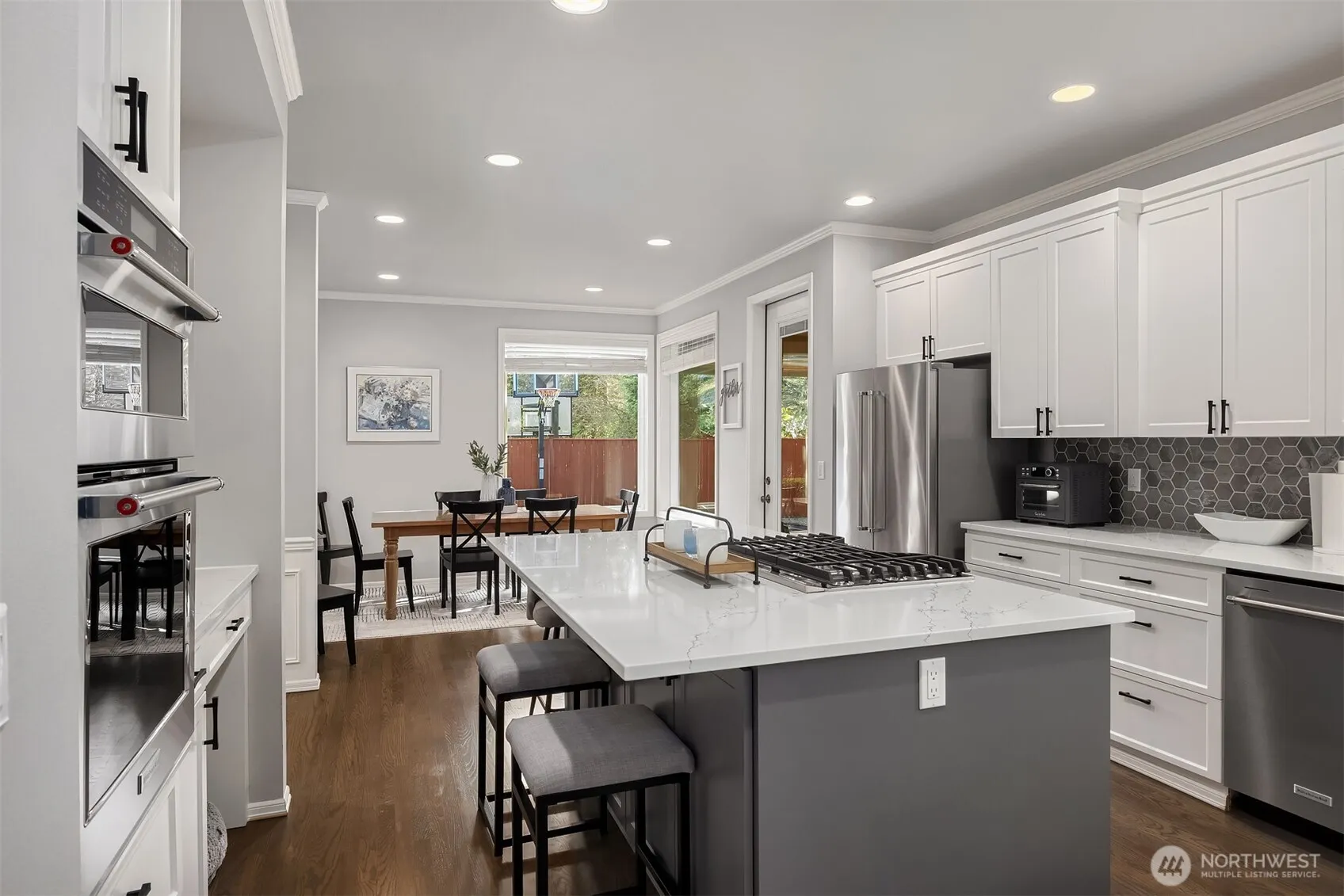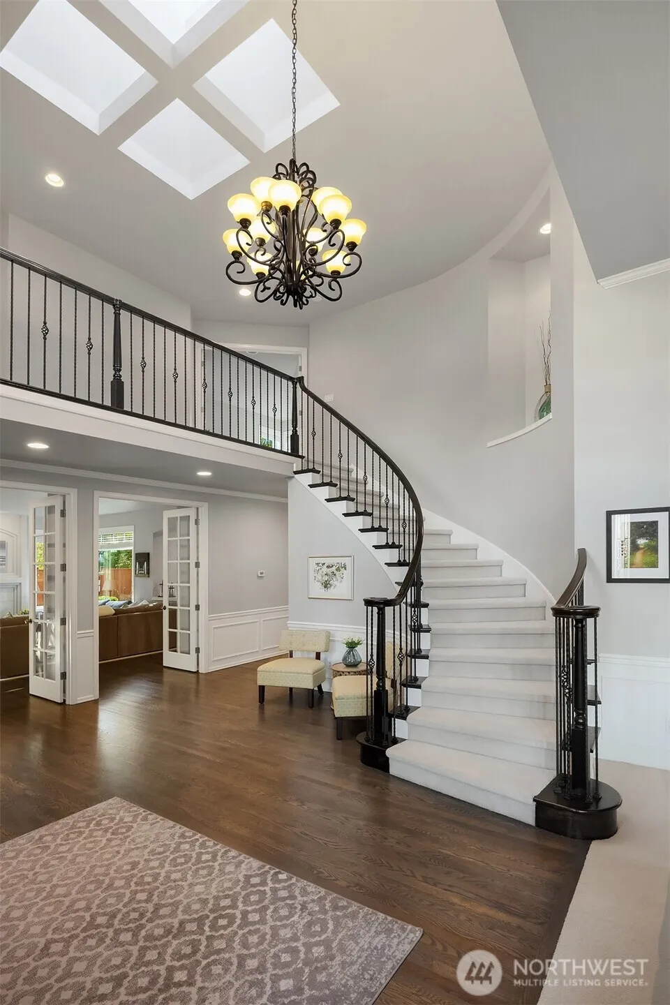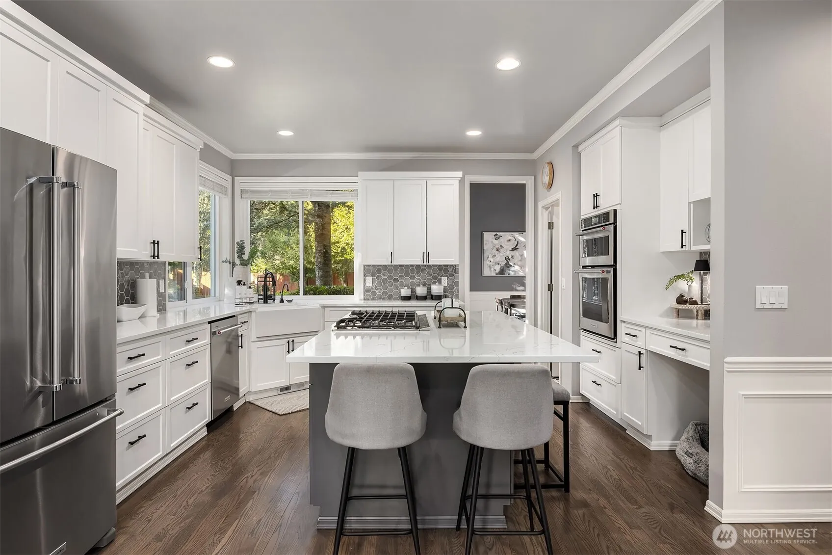 This Stunning home is located at the end of a quiet cul-de-sac, providing privacy & easy access to all that the sought after Trossachs neighborhood is known for – schools, parks, trails, and neighborhood community & connection. The circular floor plan has wonderful flow and sunlit spaces highlighted by a vaulted 2-story skylit entry that welcomes guests. On the main floor you will find a recently remodeled eat in- kitchen which opens to the dining rooms (both formal & informal); a spacious media room with glass paned French doors, built ins & gas fireplace; large office; living room with wood burning fireplace; and a mud room with cubbies for storage & laundry coming in from the 3-car garage. Off the main floor, step outside and feel the sun on your face as it filters through the trees as you are instantly transported to a mountain resort offering an expansive covered deck with built-in BBQ; sport court; bubbling water feature; & campfire. Upstairs, the primary suite feels like a true retreat with sitting room & luxurious 5 piece, skylit bath. You will also find 3 additional bedrooms and 2nd bath. Thoughtful updates throughout with newer windows, A/C & custom stained oak hardwood floors.Large 3 car garage with EV charger + work space & tons of storage in built in cabinets & finished attic space.