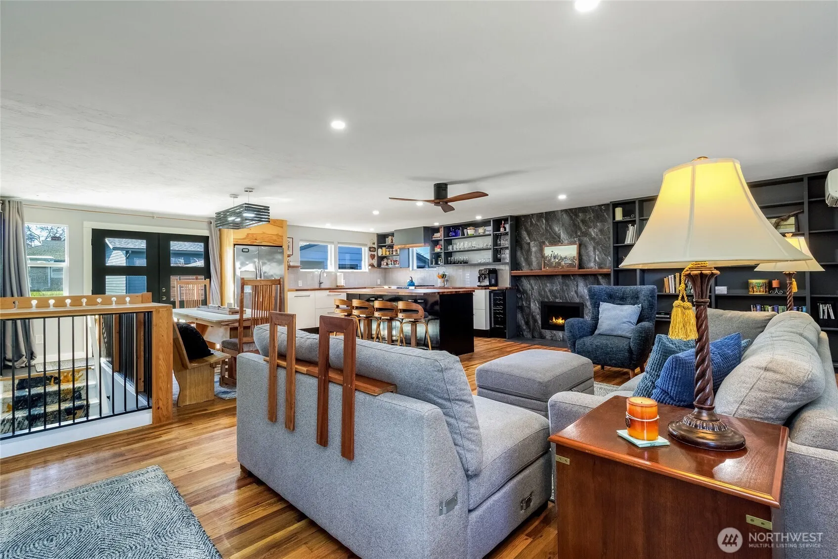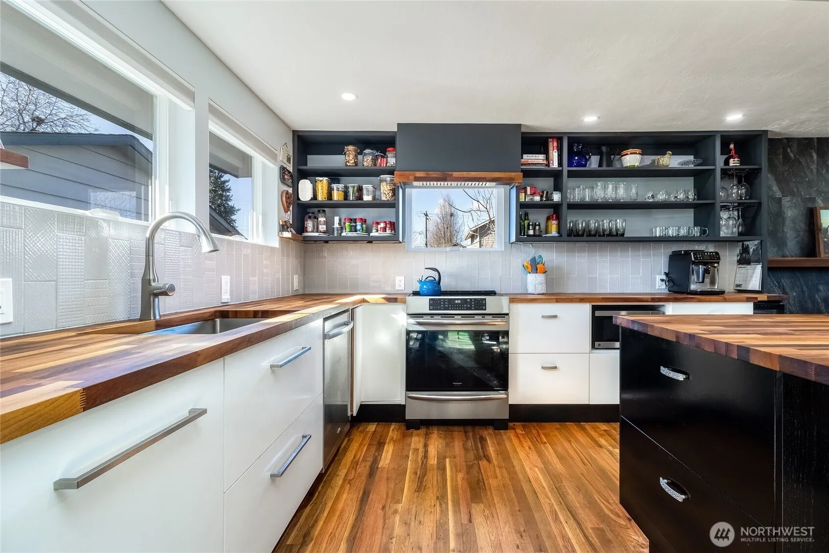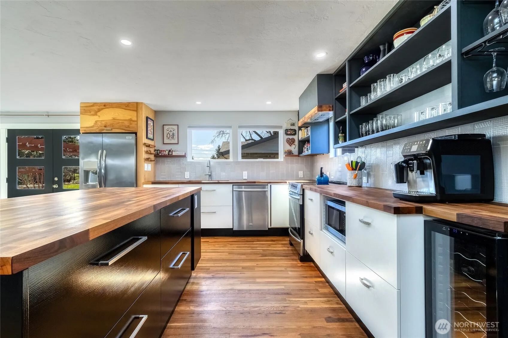 No detail overlooked in this thoughtfully and tastefully updated 1958 Walla Walla Bungalow. Mid Century Modern details bring out the warm and functional design. Main level Primary Suite has private bath with heated floors and walk in closets. Two additional bedrooms and full bath on the main, additional laundry unit in hall for convenience. Refinished hardwood floors throughout the main level, new windows, fully updated kitchen. Custom built bookcase surrounds the gas fireplace and creates an upscale focal point in this great room. Lower level features bonus room with wet bar/mini kitchen, 3/4 bath, and full laundry and work space. Views of Garrison Creek. Close to schools! Detached oversized one car garage is utilized as a workspace. Detached brand new three-bay shop is perfect for hobbies or storage. Shop is on separate electrical meter.