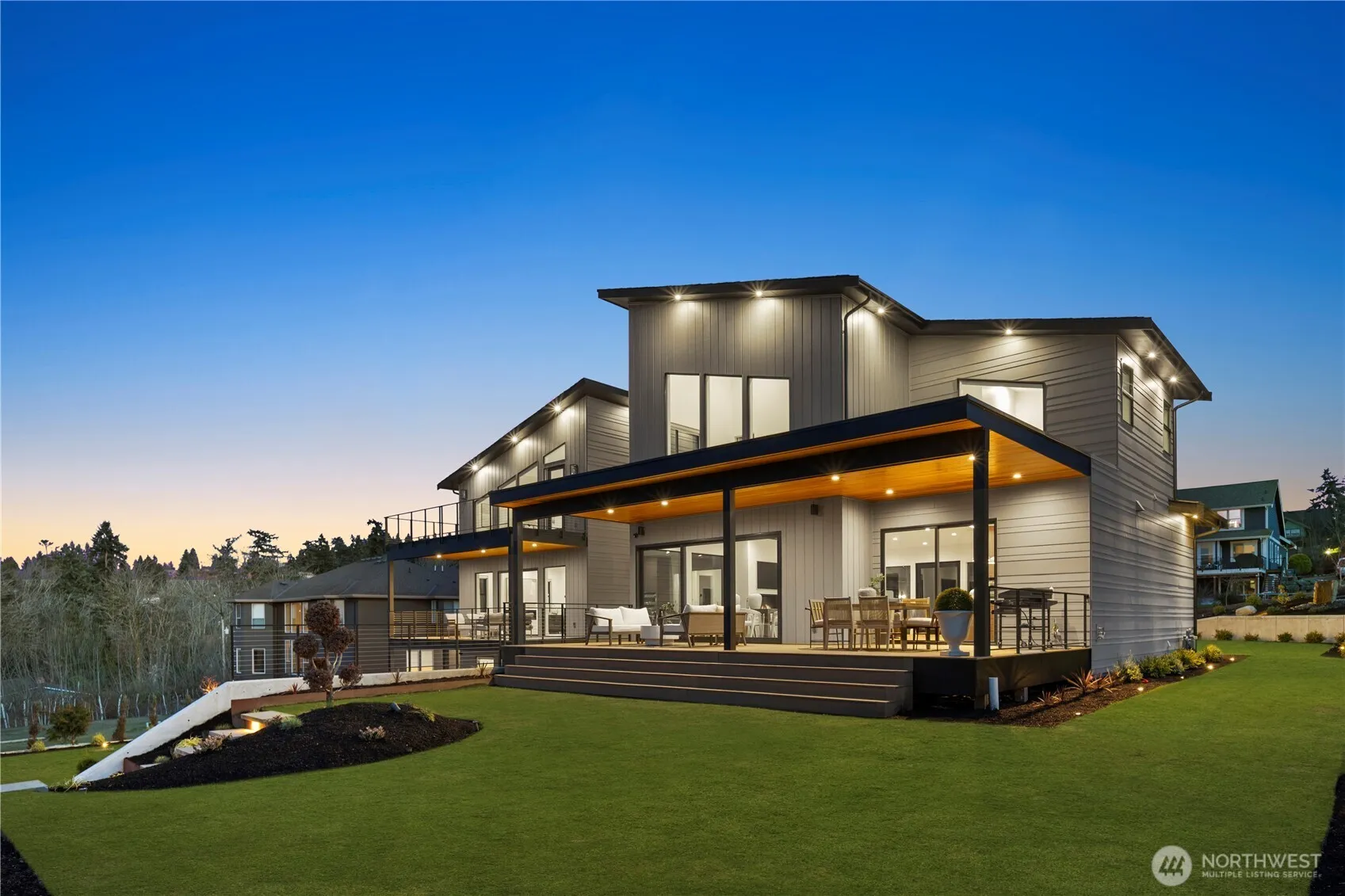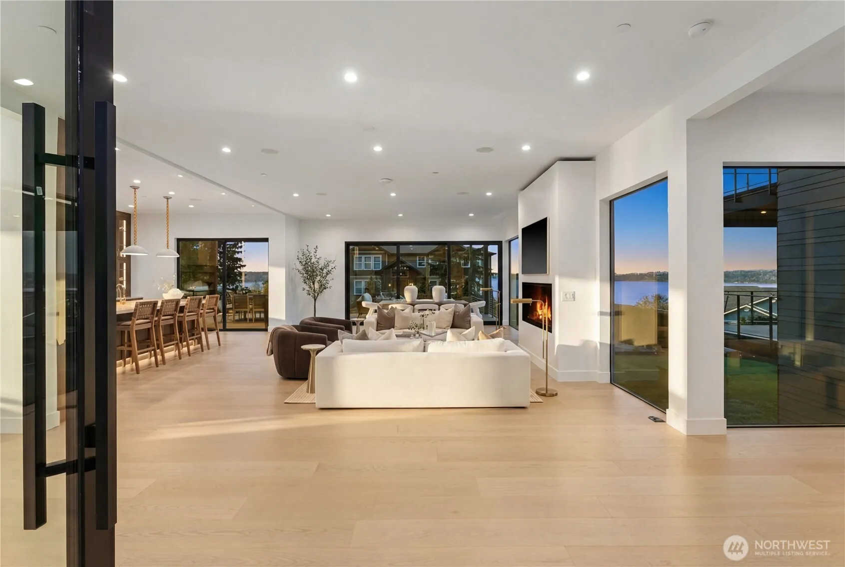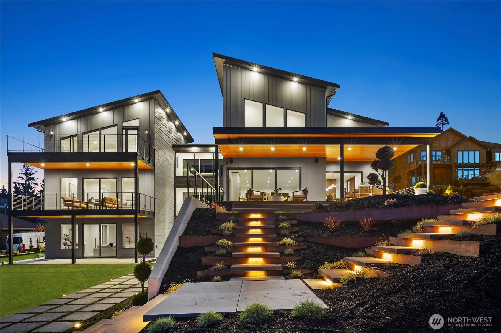 Introducing a once-in-a-lifetime architectural masterpiece in the coveted Adelaide neighborhood of Federal Way. This extraordinary 6,820 sqft custom estate with 5 bedrooms and 5 baths was designed to capture commanding, unobstructed views of the Puget Sound and surrounding mountains through breathtaking walls of floor-to-ceiling glass. A dramatic 5’x8’ pivot entry door welcomes you into soaring 10’+ceilings, a grand floating staircase, European hardwood floors, and 3 custom fireplaces.The chef’s kitchen is nothing short of spectacular, showcasing floor-to-ceiling Tafisa Lumnia cabinetry, stunning Taj Mahal quartzite, Z-Line professional appliances, an oversized statement island, and a fully appointed butler’s pantry. The main-level primary suite is a private sanctuary with its own view deck, spa-caliber 5-piece bath adorned with custom tile, Brassna fixtures, heated floors, and a freestanding soaking tub. 3 bedroom offers en-suite luxury. The lower level is designed for unforgettable entertaining or multi-generational living, featuring a 2nd kitchen, theater or guest suite, and an impressive 10-person steam and sauna retreat. A 950 sqft garage with soaring ceilings, epoxy floors, custom built-ins, and oversized doors elevates the experience even further. Set on a meticulously landscaped half-acre with three expansive view decks and a grand driveway, this residence is the epitome of elegance, craftsmanship, and refined Northwest luxury.