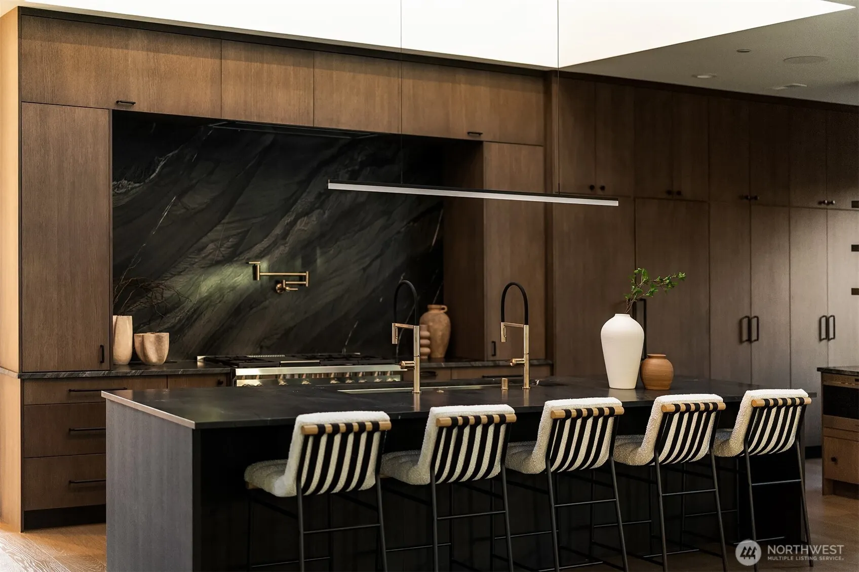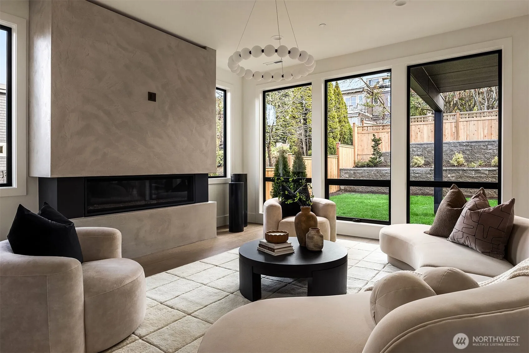 A Showstopper with Lake Washington views – Enfort Homes unveils the Brody, an architecturally striking Home just steps from Carillon Point. Main Entrance provides access to an Elevator, Gym/Yoga Room, Media Room & Guest Ensuite. A dramatic open-story Chef’s kitchen w/ 21’ soaring ceiling height & triple skylights creates a true vantage-point experience highlighting Wolf & Sub-Zero appliances, dual dishwashers, dual-faucet sink, wine cooler, Andes brushed black quartzite & custom full-height cabinetry. A comprehensively appointed Butler’s Pantry lives like a true second kitchen with an additional refrigerator, dishwasher & sink. The expansive double doors provide access to covered patio that sits level with fully fenced backyard, complete w/ heating panels & a fireplace, designed for effortless year-round indoor-outdoor living. A spa-inspired Primary Suite presents like a serene retreat with lake views, fireplace, and luxurious five-piece bath featuring a designer fixtures & lighting, radiant heated floors, toe-kick illumination. The Rooftop deck offer stunning sunsets view from the privacy of your own home. Rockwool insulation & Aerobarrier sealing ensure superior sound, efficiency, & quiet comfort. Additionally: Smart system for multiple features, Car charger plug, a Sonos sound amplifier, 10 ceiling Speakers installed – set apart this luxurious residence. Just a block from Houghton Beach and minutes to premier shops, entertaining, dining & acclaimed schools.
