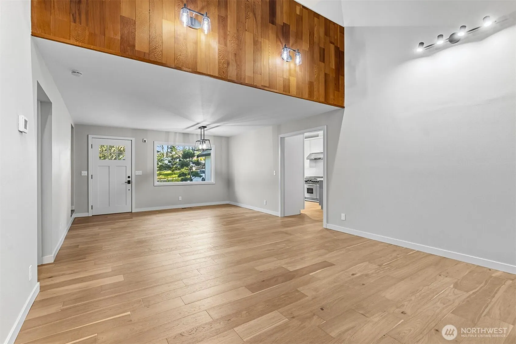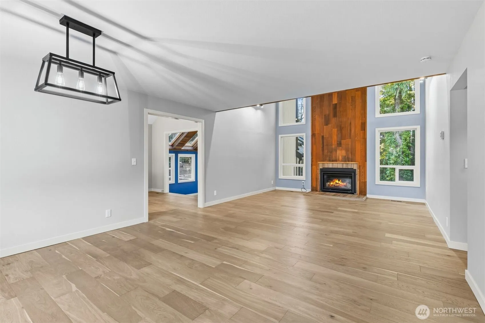 Discover this beautifully remodeled 4-bedroom, 2-bath Northwest Contemporary home, offering 2,810 SF of exceptional design and luxury finishes on just over half an acre. The open, sun-filled floor plan features soaring vaulted ceilings, a dramatic floor-to-ceiling fireplace, recessed lighting, stunning new hardwood floors, fresh interior paint, new doors, trim, and more. The gourmet chef’s kitchen is equipped with top-of-the-line stainless steel appliances, including an 8-burner gas range and a top-mount refrigerator, quartz countertops, modern cabinetry, and a breakfast bar. It seamlessly flows into the dining and family rooms, with sliding doors opening to a wrap-around deck and patio — ideal for entertaining or relaxing outdoors. Enjoy an incredible sunroom surrounded by endless windows, filling the home with natural light year-round. Renovated bathrooms feature new double vanities, quartz counters, and updated tubs with elegant tile surrounds. Additional highlights include a new roof, fresh exterior paint, professional landscaping, a detached 2-car garage with attic storage, and RV parking.