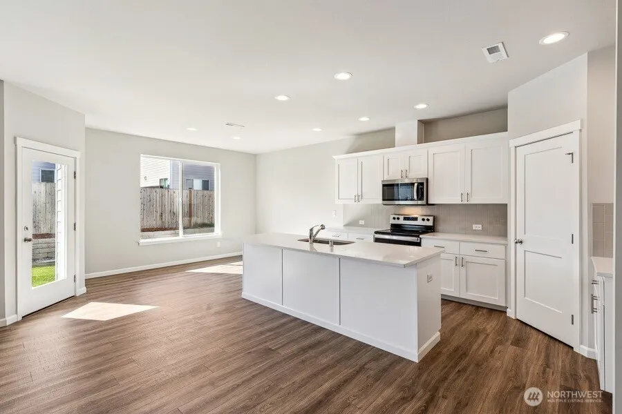 Welcome to Tahoma Terra in Yelm, a thoughtfully designed community of distinctive new homes by award-winning builder SoundBuilt Homes. Ideally located with convenient access to JBLM and surrounded by numerous parks and open spaces. Homes range from 2,033 to 2,853 sq ft with thoughtfully designed floor plans featuring three-car garages, main-floor guest suites, and dens. Main-floor living floor plan available. Plans include spacious layouts with bonus rooms, lofts, and covered patios on large homesites. Enjoy high-end finishes throughout, including 3-centimeter slab countertops in quartz or granite in the kitchen and all bathrooms. The kitchen features a spacious island with abundant cabinetry, soft-close drawers and cabinets, elegant slide-in range, full tile backsplash, and pantry. Durable luxury vinyl plank flooring extends through the entry, kitchen, great room, bathrooms, and laundry room. The great room includes an open railing to the second floor, creating a bright and spacious feel. Each home includes EV outlets and fully landscaped yards. Homesite 305 highlights our WREN plan. 2033 sq ft home, downstairs, large great room, Kitchen with island and pantry, dining area and covered patio. Upstairs highlights 4 total bedrooms, primary with 5 piece elegant bathroom with free standing soaking tub and laundry room. BUYER BONUS of $18,000 with preferred lender Your Way toward rate buy-down or closing costs. MODELS OPEN DAILY 11:00 TO 5:00 !!!