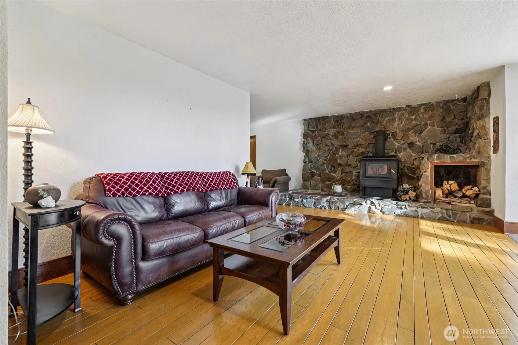 Discover PNW charm in this one of a kind home featuring 4 bedrooms, a fully equipped ADU, and stunning natural details throughout. Designed to feel like a cabin retreat, this home blends warmth and character at every turn. Step inside to find rich wood trim and skylights that bathe the home in natural light. The updated kitchen offers bar seating,custom cabinetry and plenty of storage. A wood-burning stove surrounded by hand laid stone creates a cozy centerpiece for the living space, ideal for quiet evenings or entertaining. The property extends beyond the home with thoughtfully designed spaces for creativity and functionality, including a separate potting shed, dedicated shop, and garage.Attached ADU provides endless possibilities.