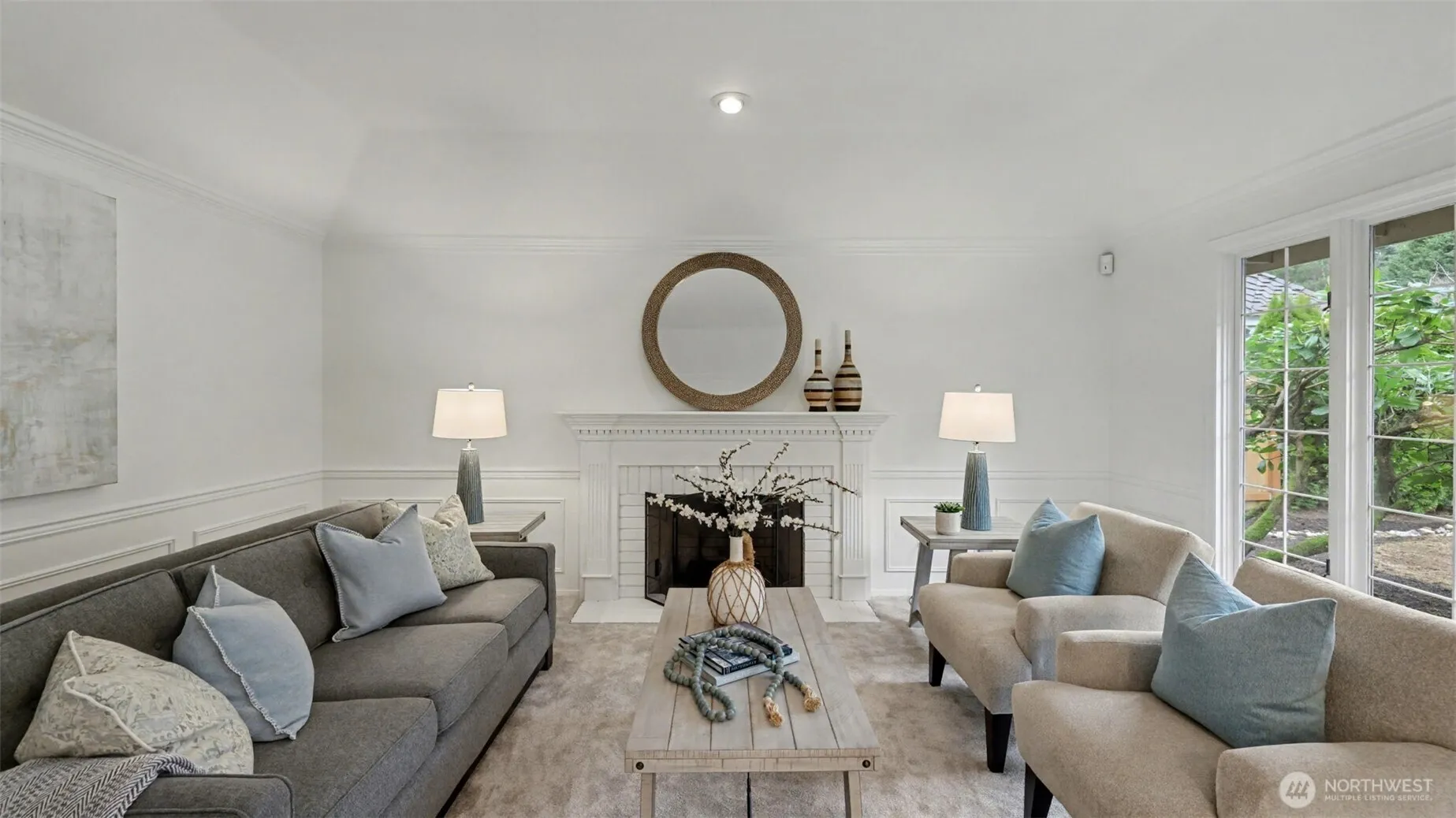 Classic Buchan traditional resale in Sammamish’s highly sought-after Hampton Woods—renowned for its pride of ownership, desirable setting, neighborhood park, and tennis court. Showcasing the timeless quality of Buchan architecture and craftsmanship, this home offers the rare advantage of true main-level living with a spacious primary suite on the first floor. A brick entry and hardwood floors welcome you, flanked by elegant formal living and dining rooms. The living room features a coffered ceiling and statement brick fireplace, while the dining room shines with crown molding, chandelier, and floor-to-ceiling windows. The kitchen boasts painted cabinetry, granite counters, eating bar, and Dacor 5-burner gas cooktop—opening seamlessly to casual dining and a warm, inviting family room with floor-to-ceiling brick fireplace, built-ins, and exposed painted beams. The main-level primary retreat offers coffered ceilings, a French door to the patio, and a 5-piece bath with skylight and walk-in closet. Upstairs: two generous bedrooms are served by a full bath. Super private, sunny & level backyard with mature NW landscaping. Recent updates include refinished hardwood floors, fresh interior paint, and NEW lighting and carpets. Ideally located, you are in close proximity to lakes, parks and trails, downtown Sammamish, Redmond, SR520, and light rail. Excellent Lake Washington Schools.