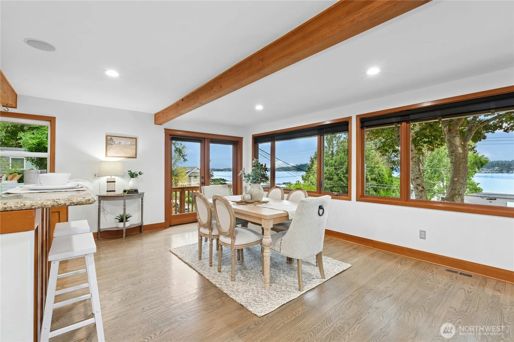 Panoramic Southwesterly views of Lake Washington, Magnuson Park, and stunning sunsets from both levels of this 4-bedroom, 3.5-bath vintage home, perfectly perched above Holmes Point Drive on a .36-acre lot—just one house from the lake. Originally built in 1923 and carefully updated over the years, this 3,537 square foot residence combines vintage charm with modern amenities in the heart of the sought-after Holmes Point neighborhood. Quality upgrades include chef’s kitchen, oak hardwood floors, updated baths—some with heated floors—newer windows, electrical, plumbing, central A/C with upstairs mini-split units & central vacuum. Walls of windows and expansive view decks on both levels invite the outdoors in, creating a seamless connection to the beautifully landscaped grounds with fruit trees and ever-changing lake vistas. Located just a few blocks from Denny Park, the community boat launch, and surrounded by over 600 acres of protected forests and trails, this is an outdoor enthusiast’s paradise. Award-winning Lake Washington Schools, including top-rated Carl Sandburg Elementary and Finn Hill Middle School. This home offers the ideal blend of natural beauty, community, and convenience—minutes to downtown Kirkland, I-405, and the iconic Inglewood Golf Club. A rare opportunity to own a classic Holmes Point estate with breathtaking views and timeless appeal.