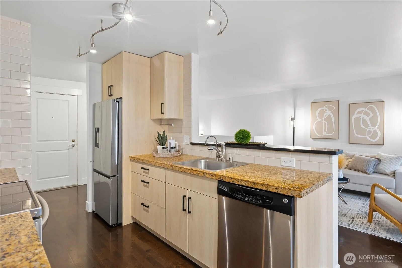 Welcome to this beautifully maintained Sequoyah condo offering the perfect blend of comfort, style, convenience in a resort-like setting. This bright and inviting home is one of only three that has this 2-level floorplan, creating a perfect opportunity for a roommate or multi-generational living. It features an open-concept layout with large windows that fill the living space with natural light. The spacious living room flows seamlessly into the dining area and modern kitchen, complete with granite tile countertops, ample cabinetry, and updated appliances—ideal for both everyday living & entertaining. Enjoy your morning coffee or unwind in the evening on the private patio. The main level primary bedroom provides a peaceful retreat with generous closet space, full bath, stackable washer and dryer. The lower level additional bedroom and living room with fireplace is perfect for guests, roommate, or flexible living needs. It also has its own entry door! NO Rental Cap – and approx. 85% owner occupancy. 2 dogs/cats no weight restrict, but some breed restrictions. Residents benefit from community amenities such as secure lobby entry, dedicated covered parking, pool, clubhouse, exercise room and beautiful, well-maintained grounds. Also, there is a secure, dedicated bike storage on the premises. Located just minutes from charming downtown Edmonds with shops, restaurants, waterfront, ferry, and close proximity to I-5 and transit, this condo offers easy access to everything Edmonds!