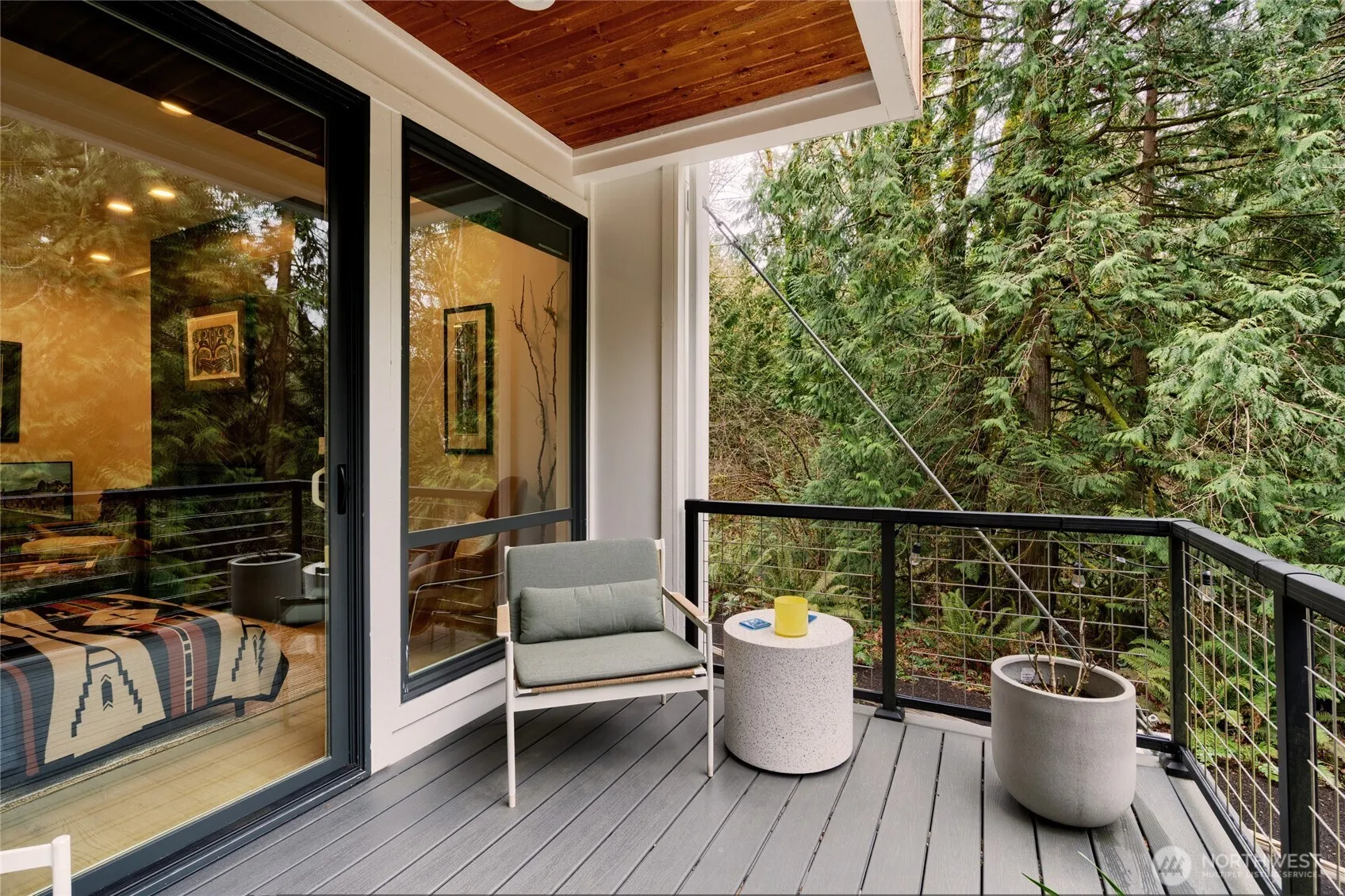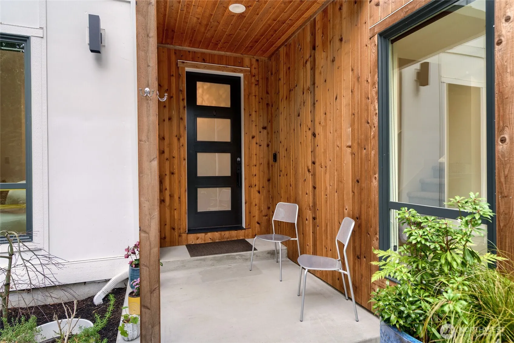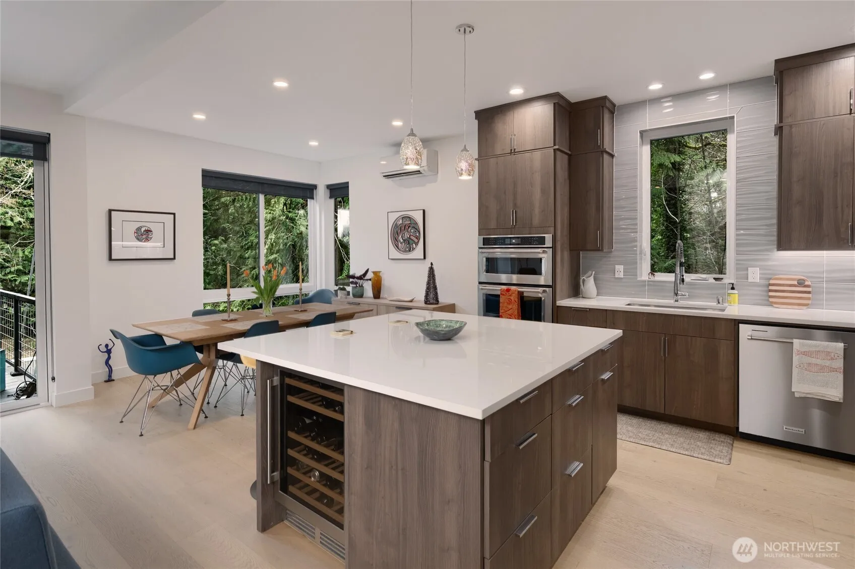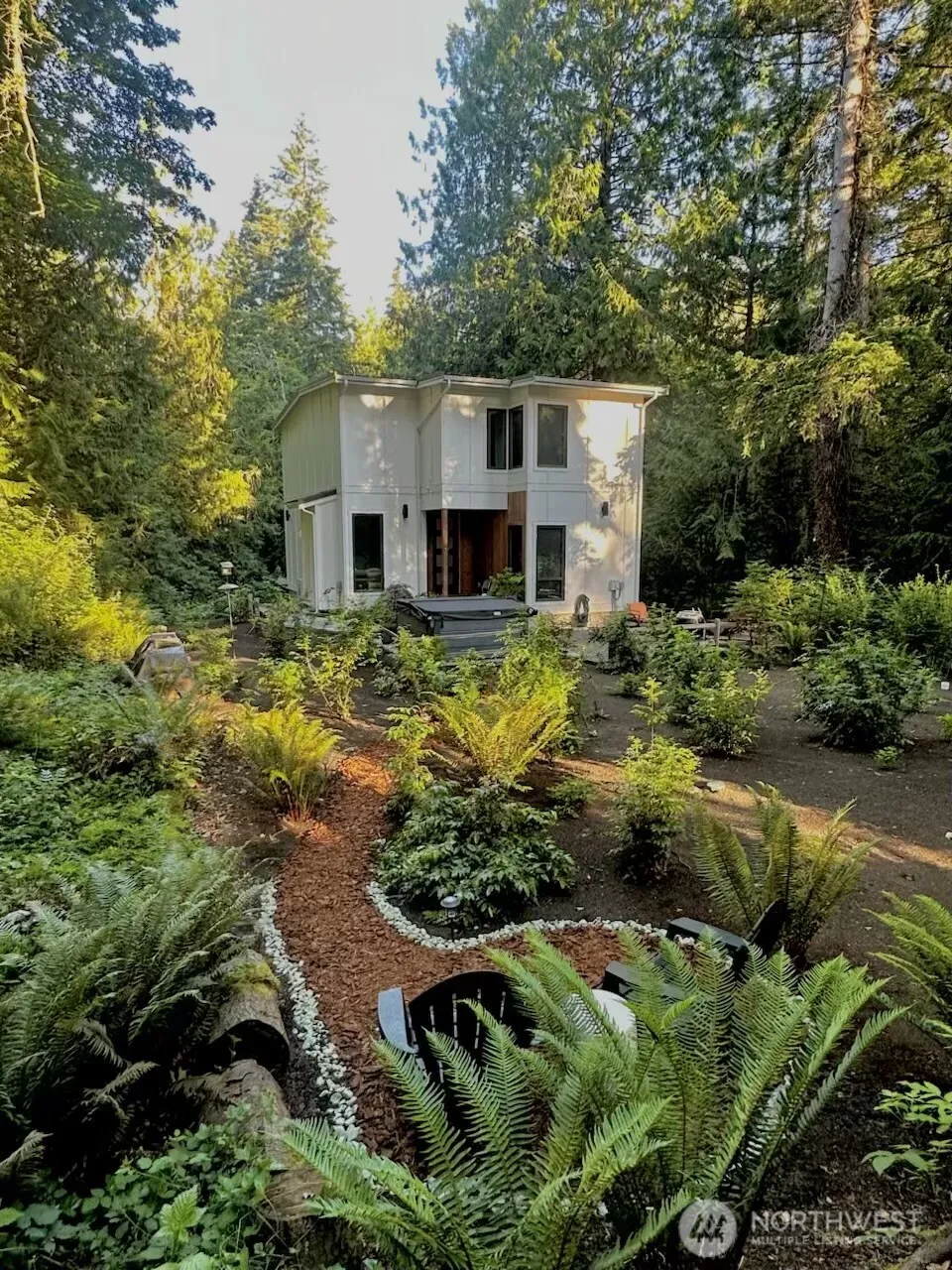 Live in a peaceful treehouse setting with birds & wildlife. Located in Port Madison, the home features 10-ft ceilings, an open-living plan, gas fireplace, high-end kitchen, wine fridge, & large island. Two primary suites boast heated floors and walk-in closets. The main-floor office includes high-speed fiber cable. The large 2-car garage has a professional epoxied floor. This home offers true privacy and lock-&-go ease. Enjoy a low-maintenance yard with native landscaping, relax in the hot tub, or gather around a fire pit. Enjoy nearby trails & kayaking at Hidden Cove Park. Easy access to Bloedel, Poulsbo, Kingston, downtown Bainbridge, & the Seattle ferry.