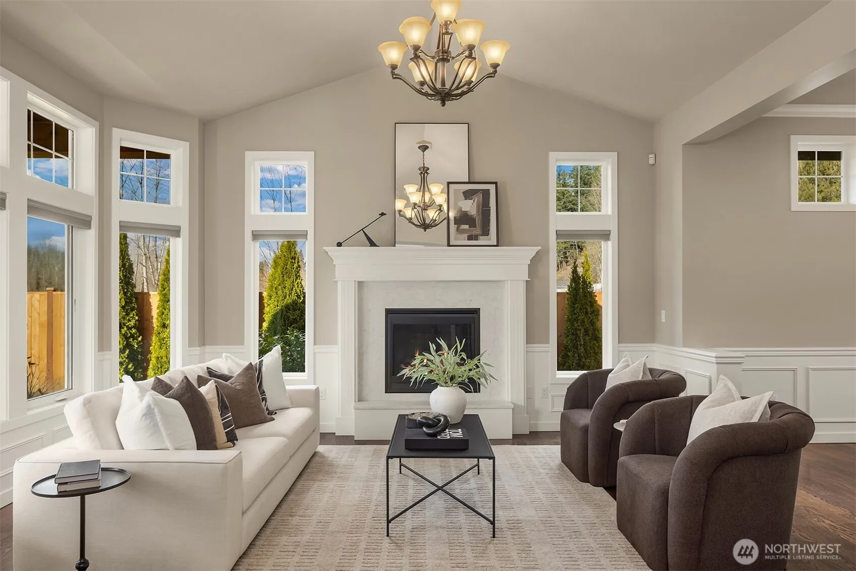 This custom-built private estate on 2.4 acres gives you space to breathe without sacrificing convenience. With 3,910 SqFt, 4 beds, & 4 baths (2 full, 2 3/4, 1 half), the layout was designed for real life & effortless entertaining. High ceilings, granite counters, stainless steel appliances, & beautiful hardwoods offer a luxurious life style, while the oversized island anchors a kitchen that opens to the family room with fireplace & wet bar. It’s the open concept everyone wants, flowing out to the large deck & pergola for easy indoor-outdoor living year-round. Upstairs, the primary suite feels like a true retreat with a sitting area, walk-in closet, & remodeled bath with tile overlooking the landscaped yard. Downstairs, the office includes a 3/4 bath & can easily convert into a guest suite for out-of-town visitors or multi-generational living. A circular staircase adds warmth & architectural character. Sunlight fills the home from sunrise to sunset. Summer mornings on the deck are hard to beat, & in August & September you’ll be picking fresh blueberries from your own yard. Raised garden beds with drip irrigation keep everything thriving. Recent upgrades include a motorized driveway gate, new carpet, Trex deck, French drains, planter boxes with irrigation system, & a fully enclosed cedar fence. Private & peaceful, yet close to 520 as well as Evans Creek Trail, Perrigo Park, & Arthur Johnson Park. A rare opportunity to enjoy acreage, privacy, and convenience in one property.