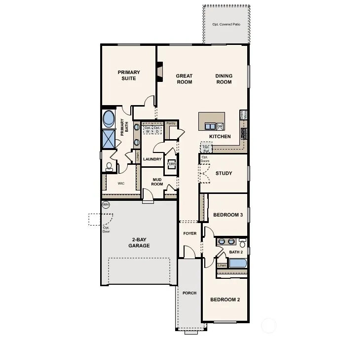 The sprawling, single-story Biscayne plan at McCormick Trails offers space, style, and contemporary design. In the front of the home, two bedrooms flank a full bath. Adjacent, you’ll find a private study. The primary suite is across the hall, boasting a walk-in closet and a deluxe attached bath with a walk-in shower and separate soaking tub. Open kitchen is steps away, showcasing a walk-in pantry and a center island. The kitchen flows seamlessly into a bright, airy great room and a dining area. Also includes a convenient mud room! Buyer’s Broker must accompany &/or register Buyer at 1st visit.