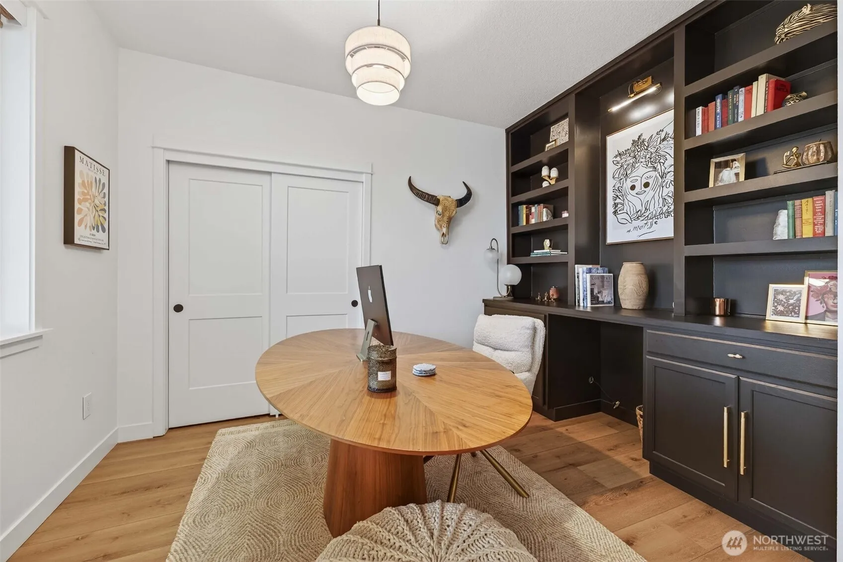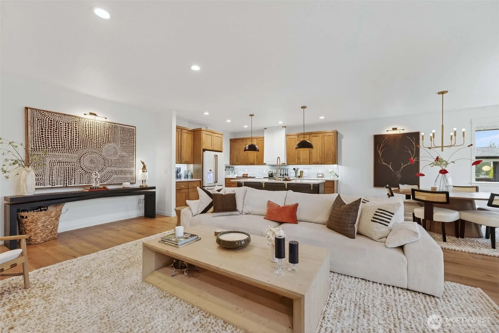 Tucked in a quiet La Center neighborhood with open pastures behind you, this home offers that rare country feel without sacrificing convenience. Hawks, deer, and the occasional coyote pass through the back field, yet coffee shops, bakeries, parks, and casinos are just minutes away. The sellers were meticulous in their remodel, and it shows. This home lives and feels brand new. The expanded kitchen and dining area is the heart of the home, featuring quartz countertops, a large island, Custom cafe’ appliances and wraparound windows that flood the space with natural light. The living room anchors it all with a shiplap gas fireplace and custom built-ins. A dedicated office with stunning built-ins could easily serve as a second main-level bedroom. The primary suite is a true retreat with tray ceilings, a double-door entry into the bath, soaking tub, walk-in tile shower, his-and-her vanities, and a large walk-in closet. Upstairs adds two more bedrooms, a full bath, and flexible storage space. Out front, the covered porch and porch swing are made for warm summer evenings. Out back, the cedar-planked covered deck keeps you dry rain or shine while you entertain and take in views of the hand-dug koi pond, mature landscaping, and open pasture beyond. It shows like a model home — without the custom-built price tag. In a community with continued growth on the horizon, this one is hard to beat. Financing Incentives are available on all properties from SIRVA Mortgage, Inc