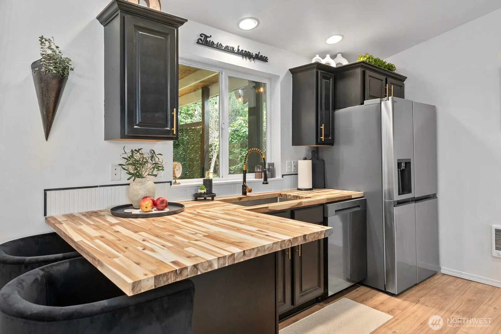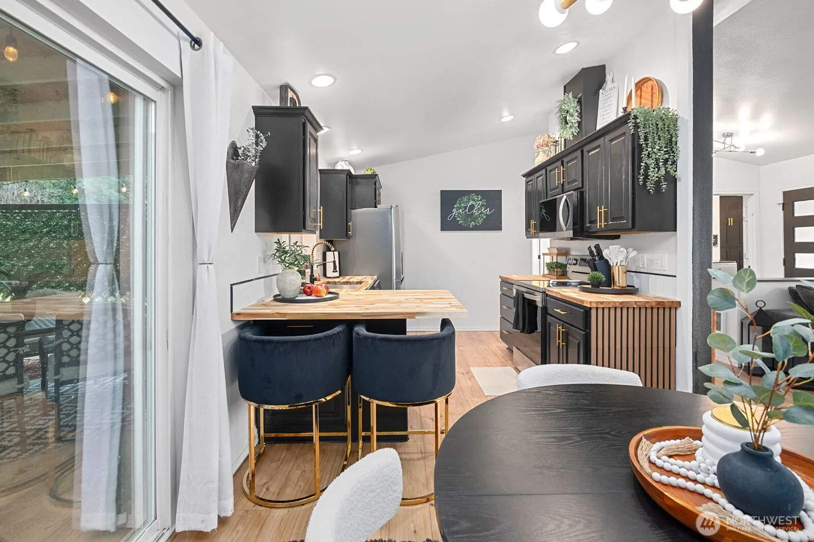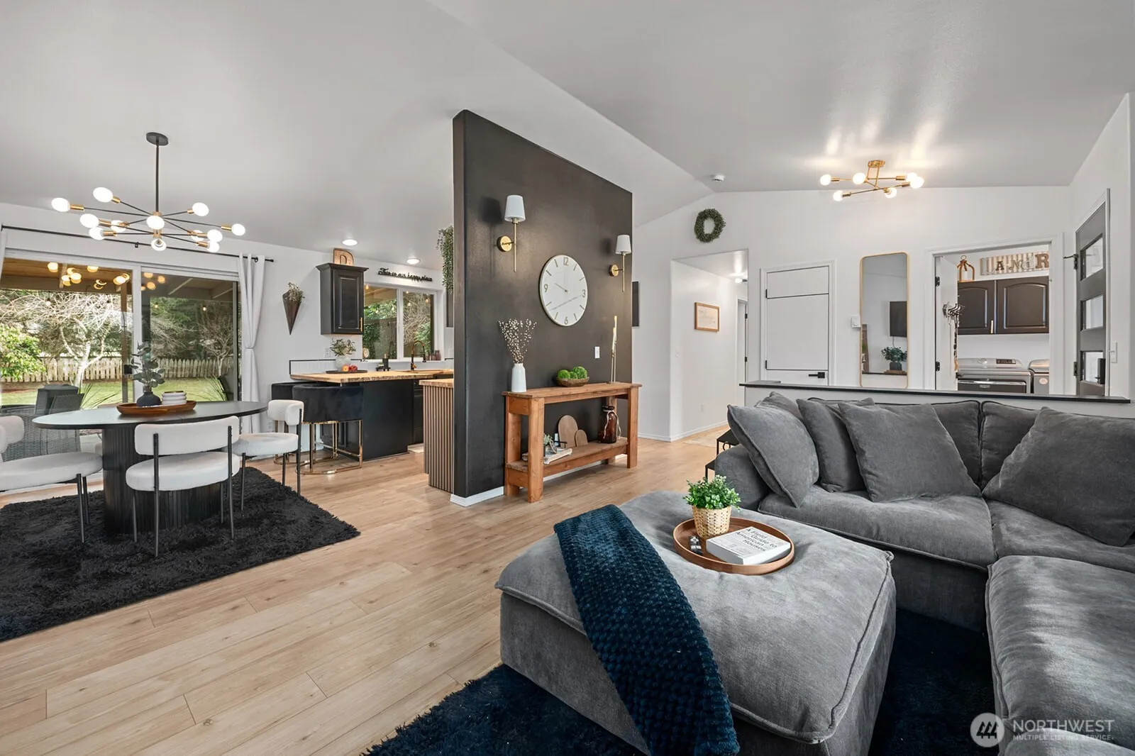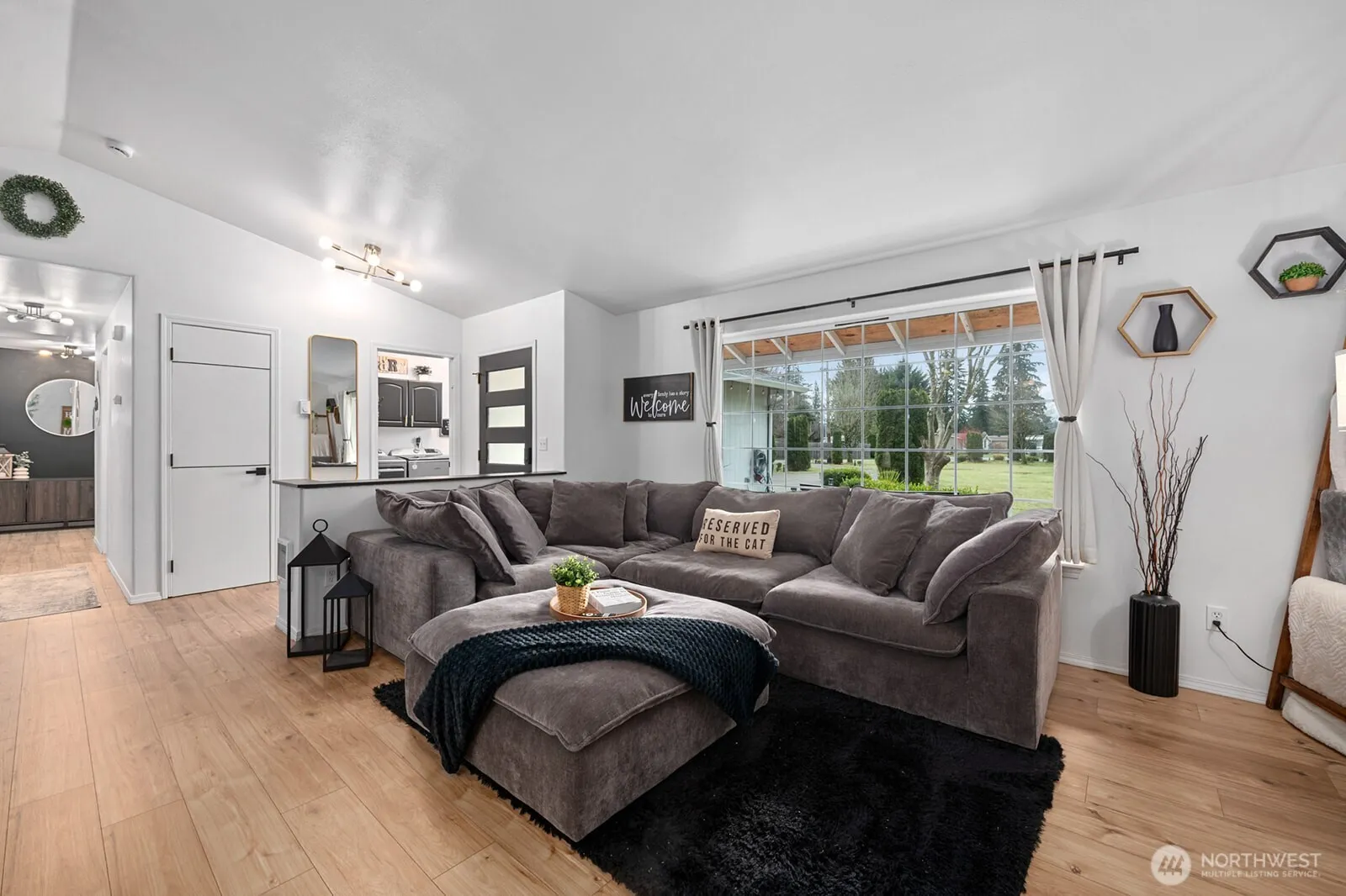 Pulling into this captivating fully remodeled home, you’re welcomed by a wraparound driveway lined with lush trees and plenty of parking for large gatherings. Situated on over an acre of flat, usable land, there’s room to create your own small farm, with established blueberry bushes and mature apple and pear trees ready for summer picking. A brand-new roof (April 2025, with warranty) and a charming covered front porch set the tone.Step inside to vaulted ceilings, all-new flooring, modern fixtures, and thoughtful finishes throughout. The spacious living room flows seamlessly into a dreamy kitchen featuring stainless steel appliances, butcher block countertops, stylish backsplash, and bar seating that opens to the dining area—perfect for entertaining.Down the hall are three generously sized bedrooms, a beautifully remodeled main bath with tiled surround, and a stunning primary suite complete with a walk-in closet and fully updated private bath showcasing double vanities and a tiled shower with waterfall feature.The laundry room offers abundant storage just off the garage. Outside, enjoy year-round gatherings on the expansive covered back patio with outdoor TV and windbreak wall. The fully fenced backyard feels private and serene, complete with a pond, fire pit, gazebo, workshop outbuilding, and lush landscaping. Country living with space, style, and convenience, just minutes from town.