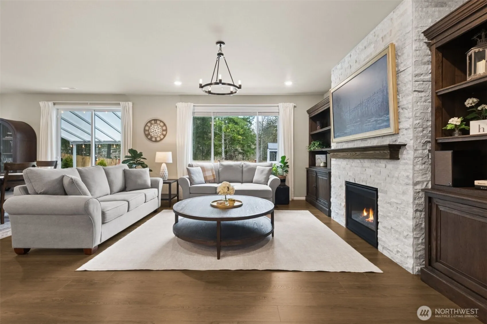 BETTER THAN NEW this Hickory floor plan from Lennar’s Platinum Collection offers an exceptional blend of elegance, comfort, and thoughtful design in this beautifully crafted two-story home. The expansive main level is ideal for both everyday living and entertaining, featuring a gourmet kitchen with double ovens, gas cooktop, an abundance of cabinetry, and generous counter space including a entertainment sized center island. The kitchen flows seamlessly into the dedicated dining area and spacious Great Room, where a custom fireplace creates a warm, inviting focal point for gatherings year-round. Step outside to the covered patio with extended living and play space, all overlooking a protected green belt for added privacy and peaceful views. Upstairs find four generously sized bedrooms include a luxurious owner’s suite with a spa-inspired bath and expansive walk-in closet. Wired for generator. This like-new resale offers timeless Craftsman design, for maximum comfort, convenience, and a setting you’ll love coming home to—just steps from the community playground.