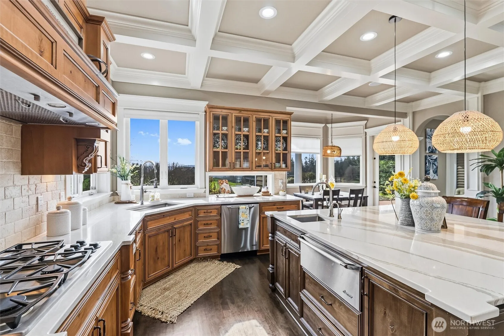 [ELEVATED LIVING] Set on 4.6 private acres in highly sought-after Dutch Hill, this exceptional luxury estate captures stunning valley and Mt. Rainier views. Thoughtfully designed for comfort and entertaining, the main level showcases a spa-inspired primary suite with a lavish ensuite and separate his-and-her closets. The chef’s kitchen features a large island, stainless steel appliances, coffee bar, and sunny eat-in area, complemented by elegant formal dining and sitting rooms. Convenience abounds with main-level laundry and two additional powder baths. The lower level offers incredible versatility with a spacious bonus area, kitchenette, office or den, wine cellar, and ¾ bath—ideal for entertaining or multi-generational living. Upstairs includes three bedrooms with a Jack & Jill bath, a private guest suite with attached bath, and a dedicated theater room for the ultimate cinematic experience. Car enthusiasts and hobbyists will appreciate eight covered parking spaces, including a large shop with an attached 870 SF, 1-bedroom apartment—perfect for guests, rental income, or extended living. A rare opportunity to own a premier view estate in one of Snohomish County’s most desirable locations.