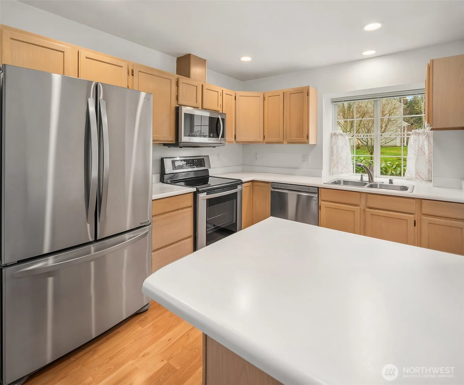 Discover Capitol Court, a highly secure, heavily sought-after & low-turnover gated community of 36 townhomes with pristine grounds, gorgeous curb appeal & ornate colonial architectural details. Nestled on a prime corner lot in a serene woodside setting with extra deep 2-car driveway & attached garage, this affordably priced 1178sf, 2 bed, 1.5 bath end-unit gem is quite a lucky find! Soaring foyer with open staircase leads to chef’s kitchen with solid whitewashed oak cabinets, breakfast bar peninsula & newer stainless steel appliances. Formal dining with picture window opens to spacious living room with 2-story vaulted ceilings, stately wood-burning brick fireplace with hearth & sliding glass doors to private extended patio overlooking protected green space. Light, bright & airy with designer laminate hardwoods & full-size washer & dryer. Top floor features main suite, 2nd bed with dual closets, oversized walk-in shower with glass doors & hallway loft. Garage with ample storage space, rear door to backyard & handy sink with full-size workbench vanity!
