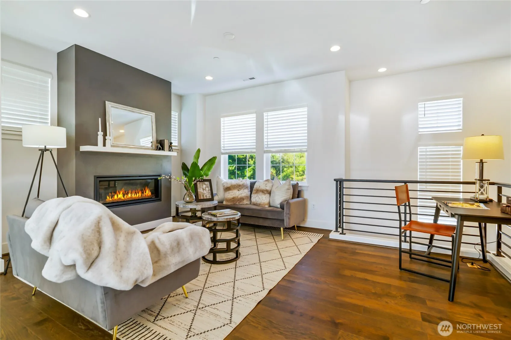 Sophisticated style & vibrant city living meet in this contemporary 2-bedroom corner-unit townhome. The light-filled open main level is perfect for entertaining, w/ a designer kitchen showcasing sleek quartz countertops, premium S.S. appliances, & an inviting gas fireplace for cozy evenings. Beautiful hardwood floors flow throughout the home w/ no carpet anywhere adding warmth and timeless appeal. A chic powder room adds a touch of luxury for guests. Upstairs, both bedrooms are spacious private en-suites. Enjoy year-round comfort w/ central A/C, 2-car garage, & unbeatable walkability to charming shops, trendy dining, and scenic parks — plus access to an elegant community clubhouse ideal for gatherings, celebrations, or relaxed weekends.