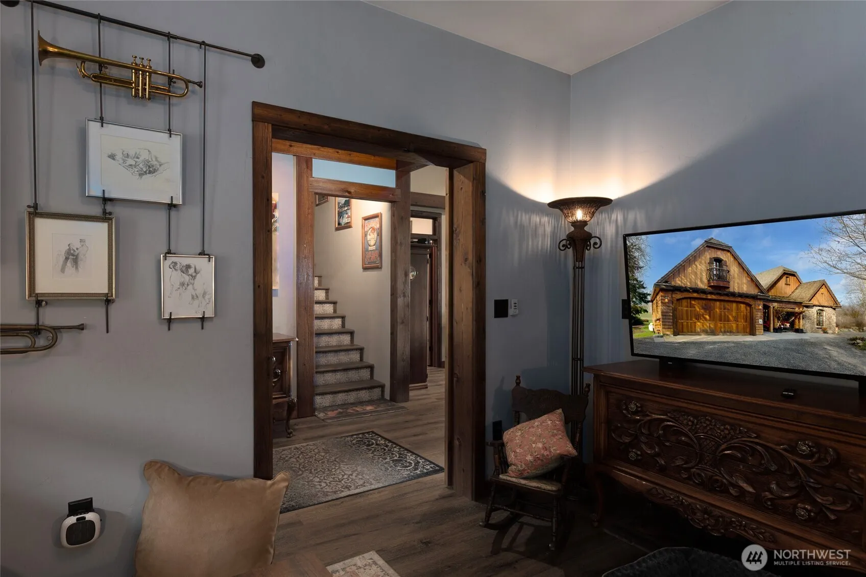 Beautiful Craftsman Home, Thoughtfully designed home blends comfort, style, and natural light. Vaulted ceilings and sun-filtered rooms create an airy, welcoming atmosphere throughout. The gourmet kitchen features custom built-ins and opens to a private deck—perfect for morning coffee or evening dining. A second deck extends from the primary bedroom. A center porch from the living room opens up with steps leading down to the golf course. Includes whole house water filtration system. The main home includes 3 bedrooms and 3 bathrooms, with a spacious living room centered around a stunning stone fireplace and attached 2 car garage. A separate 791 sq. ft. studio provides exceptional flexibility, two separate rooms for shower and half bathroom. Includes deck, patio and garden area—ideal for guests and hobbies. Located on the 1st fairway and close to the first green of the San Juan Golf & Tennis Club, this property offers direct access to a charming 9-hole semi-private course open to the public. A rare opportunity to enjoy comfort, craftsmanship, and a coveted golf-course setting.