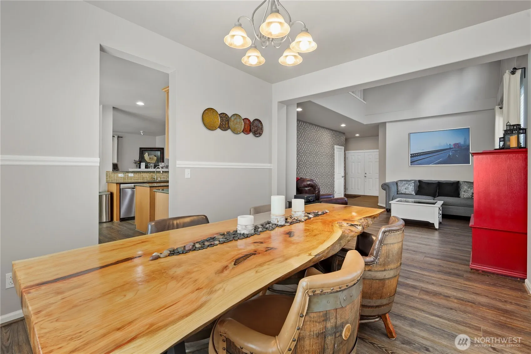 Nestled on a spacious corner lot in the coveted Dieringer School District, this Lake Tapps gem offers 5 beds, 3 baths, and a 3-car garage—with one bay converted into a home gym! Soaring vaulted ceilings greet you in the entry and family room. The main floor features a bedroom and a ¾ bath with tile—perfect for guests or a home business. Enjoy a granite kitchen with gas range, island, LG smart fridge, and eating nook. Upstairs: loft, full bath with dual sinks, and a generous primary suite with a 5-piece bath and double closets. Fully fenced backyard with Trex deck, patio, room for hot tub or firepit backs to greenbelt. AC, sidewalks, and community sports court complete the package. Close to dining, groceries, and quick freeway access! New hot water heater!