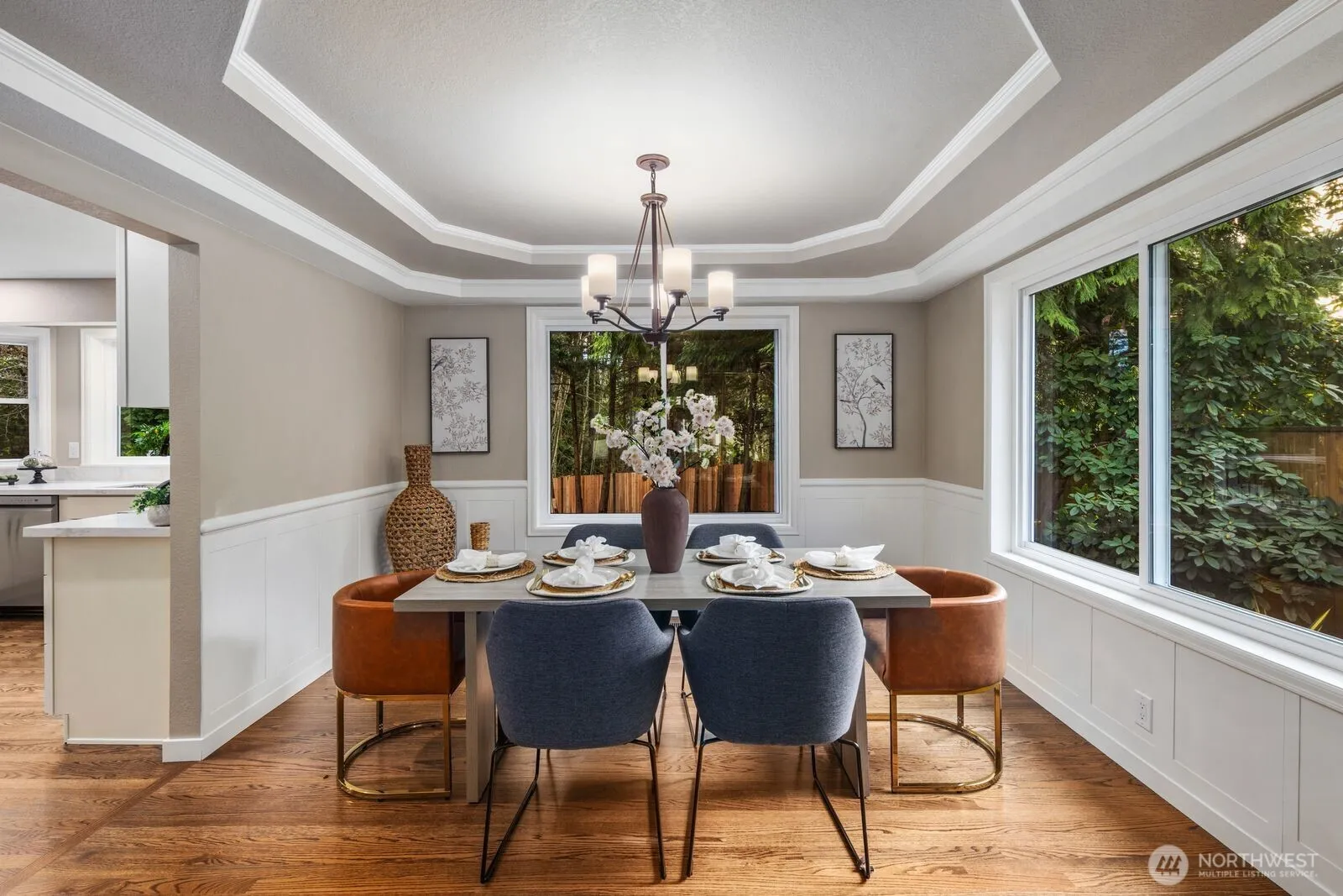 Welcome to this exceptional, newly renovated residence set on a lush, private nearly half-acre lot in the desirable Shenandoah Woods community. Surrounded by mature greenery, this 2,695-square-foot home offers a rare sense of space, privacy, and timeless appeal.Thoughtfully and extensively updated, the home features a newer roof, windows, and furnace, providing comfort and peace of mind. Inside, fresh interior and exterior paint, new hardwood floors on the main level, new carpet upstairs, and updated baseboards create a refined yet inviting atmosphere. The kitchen showcases new cabinetry, quartz countertops, and brand-new appliances, while the bathrooms have been fully remodeled with new tile, vanities, and fixtures. New lighting, plumbing fixtures, interior doors, and hardware complete the transformation.Expansive living spaces flow seamlessly to a generous backyard and new deck, perfect for entertaining or enjoying quiet evenings surrounded by nature. This is a rare opportunity to own a truly turnkey home in one of Lynnwood’s most established neighborhoods.