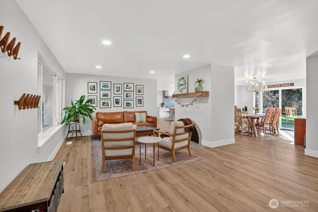 Welcome home to timeless Northwest charm paired with effortless modern living. This beautifully maintained rambler sits on more than an acre across from the scenic Lake Youngs trail system, offering year-round access to nature while remaining close to everyday conveniences. With four spacious bedrooms, the home provides flexibility for gathering, working remotely, or simply relaxing. The private primary suite offers a peaceful retreat, featuring a beautifully tiled shower and generous closet storage. Designed for connection and entertaining, the remodeled kitchen anchors the home with a stunning 12-foot island, double ovens, and expansive workspace ideal for everyday living or special celebrations. Attic storage adds practical versatility, while thoughtful updates blend comfort with classic character. Step out to a private retreat created for every season. The fenced yard includes a patio and a versatile new sport court — enjoy a full-size pickleball game or a half-court basketball setup complete with an NBA three-point line. Relax under the stars in the hot tub or by the fire pit. Mature, low-maintenance landscaping, raised garden beds, open play areas, offer room for entertaining, recreation, or quiet moments alike. A private well and abundant space provide both independence and opportunity. Whether hosting friends, enjoying time with loved ones, or embracing the tranquility of the outdoors, this inviting property is a place where lasting memories come naturally.