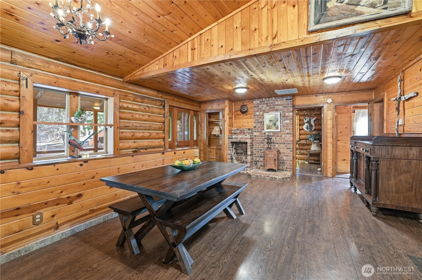 Rustic Charm on nearly 3 private acres. Tucked away in the trees just ouside of Ronald, this authentic log home sits on just shy of 3 acres offering the perfect blend of privacy and mountain character. Surrounded by towering evergreens, the setting feels like your own secluded retreat while still being minutes from year-round recreation. The open-concept kitchen and great room create a warm and inviting gathering space, ideal for entertaining or cozy nights by the fire. 2 bedrooms on ground level including Primary. 2 additional rooms with closets on upper level. Expansive decking wraps the home, providing multiple spaces to relax, host or simply take in the tranquil forest surroundings. A large detached garage offers plenty of room for vehicles, outdoor toys, or workshop space – perfect for embracing the mountain lifestyle. Located near the highly desirable Roslyn Ridge Community – having access to the community center (with paid dues) this property presents strong Airbnb/short term rental potential or an incredible full time residence or weekend getaway. Privacy, character, investment opportunity. Mountain Living at it’s best.