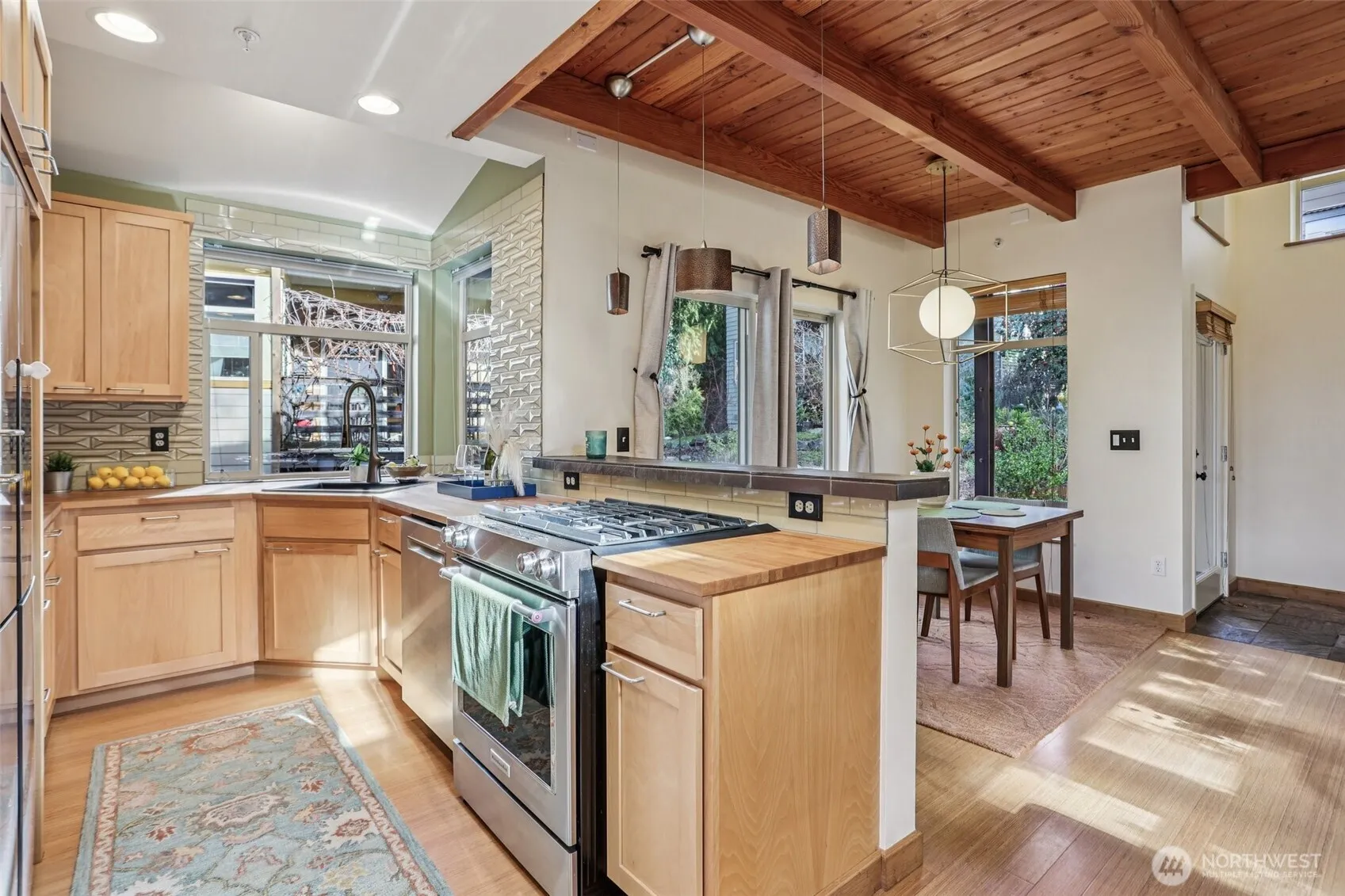 Exceptional privacy and pride of ownership define this rare stand-alone residence in sought-after Richmond Beach. With no shared walls and mature landscaping you can help cultivate, it feels like a private retreat tucked into the quiet inner portion of the community. Upgrades since 2020 enhance both comfort and style. Across from Kruckeberg Garden, this home features an open floor plan, open-beam ceilings, bamboo and eucalyptus hardwood floors, stainless steel appliances, butcher block countertops, and a cozy gas fireplace. Featured in NW Homes & Gardens and the American Institute of Architects tour. This feels like the cottage you’ve always wanted—peacefully removed yet minutes to Edmonds, Costco, Richmond Beach Saltwater Park, and transit for easy access to reality.