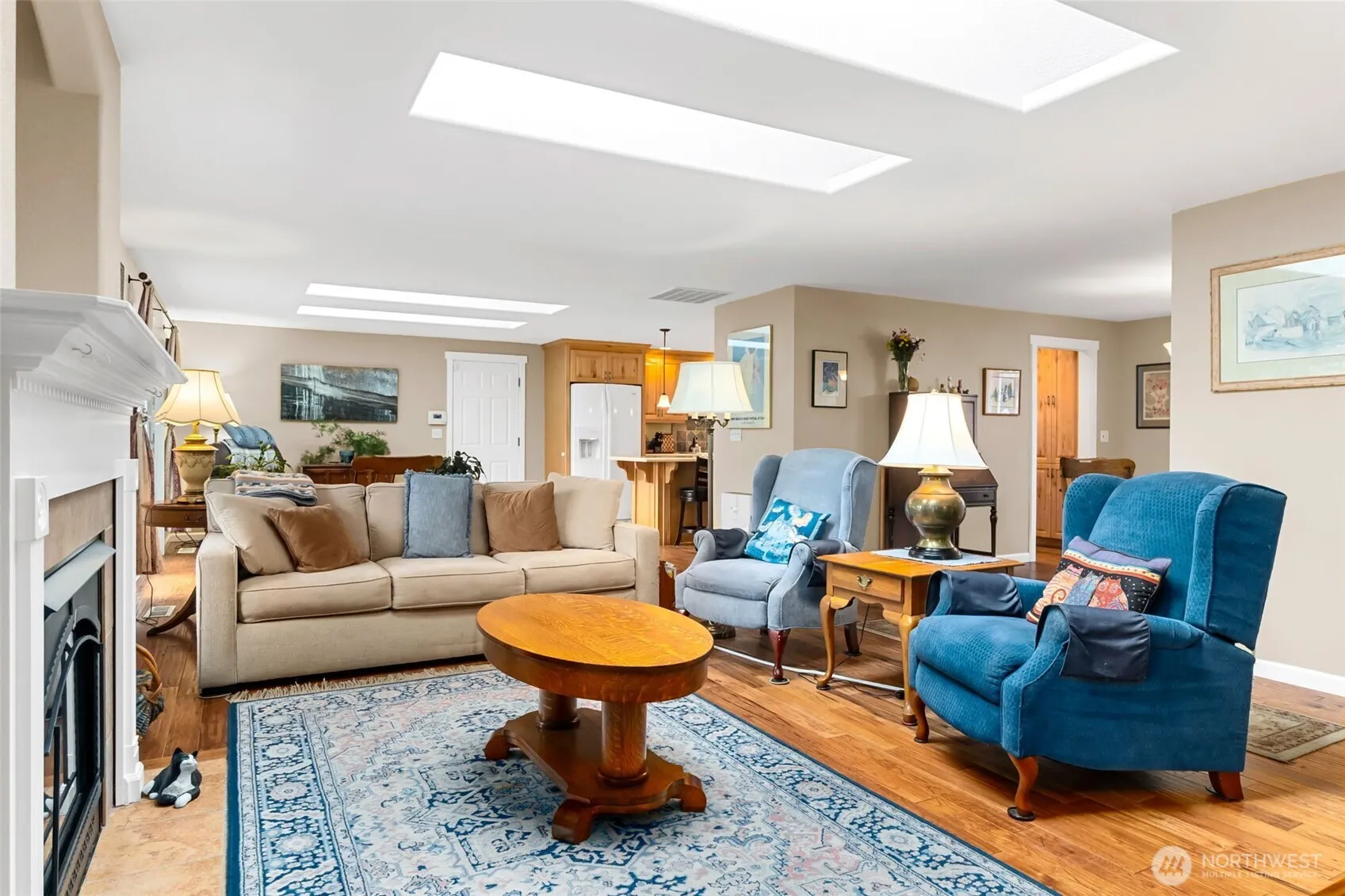 Stunning golf course rambler you won’t want to miss! Beautifully landscaped front and rear yards complemented by stamped concrete sidewalks/patio and a super cool water feature bubbling up as you gaze onto the course. Inside, great room concept living featuring rich hardwood/tile flooring, multiple skylights pouring in natural light, gas fireplace for cozy evenings, stone counters and large island (check out the photos!). Large primary bedroom features a slider to the patio w/ hot tub. The on-suite boast low barrier tile shower and dual sinks. Two additional bedrooms and shared bath for office/guests. Oversized 2 car garage. Newer roof, fresh exterior paint, and solar panels included! Fronts on Capitol City Golf Course for year round play. Close to shopping, restaurants, and the Chehalis biking/walking trail. Come see this fantastic home today!