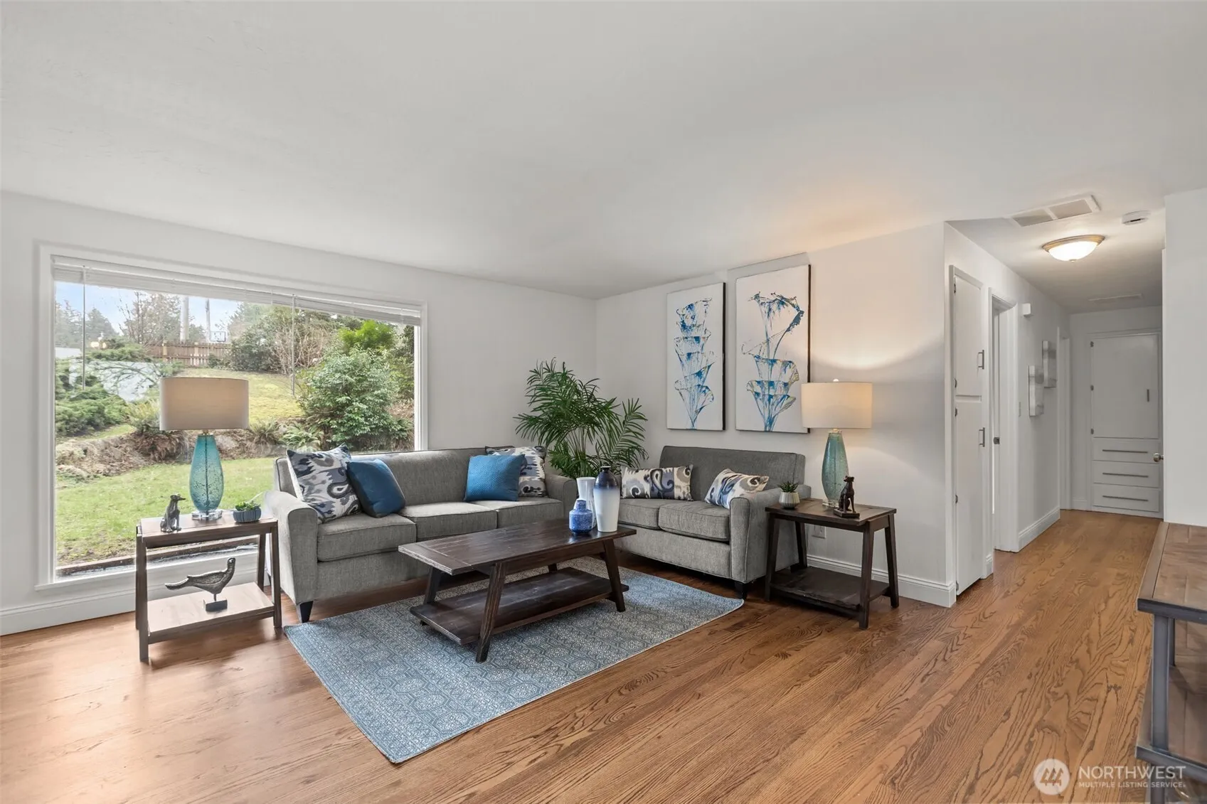 Beautifully updated 3-bedroom home tucked at the end of a quiet cul-de-sac just minutes to town and freeway access. Refinished original hardwoods run throughout the main living areas, complemented by LVP in the spacious bonus living area, offering flexible space for media, office, or play. The kitchen has been fully refreshed with brand new cabinets, countertops, and appliances, paired with all-new interior paint for a crisp, move-in ready feel. Thoughtful layout with convenient 1/2 bath access off the primary suite. Step outside to a large, private backyard with deck and peek-a-boo views of Kitsap Lake. Enjoy the peaceful and established neighborhood with privacy, yet close to everyday amenities.
