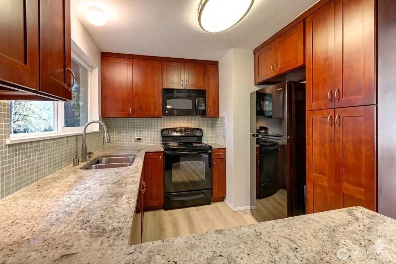 Renovated 5BR Juanita/Kirkland Home with Flexible Living & Income Potential! Step into this beautifully updated, light-filled 5-bdrm home in the heart of Juanita/Kirkland. Thoughtfully designed w/ a flexible layout & offering comfortable everyday living w/ options for multi-generational use, rental income, or ADU-style living. The main level features 3 bedrooms, a full bath, a welcoming living room w/ fireplace, & a spacious updated kitchen w/ natural cherry cabinetry, granite countertops, & engineered hardwood flooring that flow seamlessly into the dining area & out to a custom deck overlooking the private sunny backyard. Convenient main-level laundry adds everyday ease. The daylight lower level adds 2 more bedrooms, a new bath, & a 2nd updated kitchen w/ farmhouse sink, butcher block counters, custom cabinetry, in-unit laundry, & a large living/dining area w/ its own private entrance—ideal for rental income, guests, or added privacy. Enjoy an unbeatable location just minutes to Juanita Beach Park, shopping, dining, I-405, transit, and top-rated Lake Washington schools. Pre-inspected for peace of mind w/ major updates including kitchens, baths, flooring, paint, appliances, newer 200-amp panel, & windows. Situated on a landscaped ¼-acre lot, the flat, sunny, fully fenced yard features fruit trees, a stone patio, attached garage, & extra parking. A rare opportunity to own a move-in-ready home w/ built-in flexibility & income potential in a prime Kirkland location.