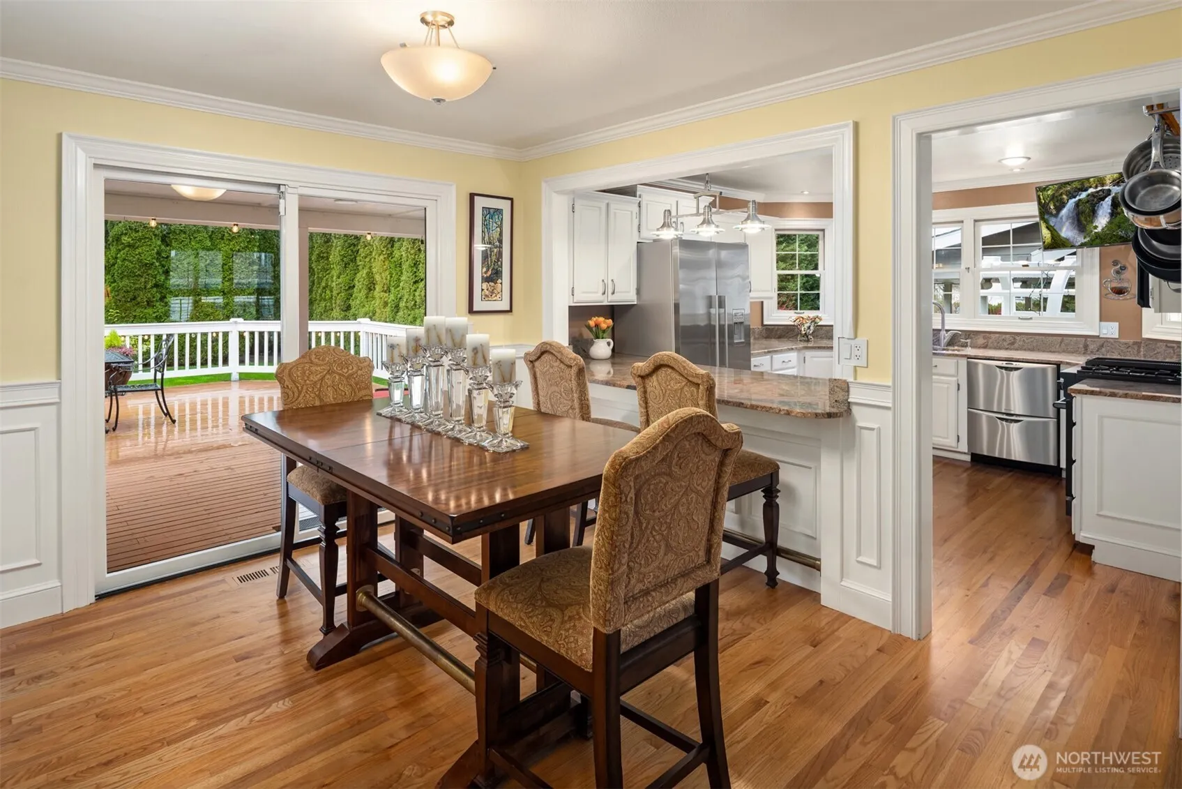 SHOW STOPPER! One owner. Meticulously maintained! Offered for the first time! 3 BDRM 3 BATHS. This updated residence presents a rare opportunity! Thoughtfully curated by its original owner, every detail reflects pride of ownership. Swedish hardwoods. An airy yet warm aesthetic, complemented by custom wainscot & precise architectural detailing throughout. The beautifully appointed kitchen is designed for both everyday living & elevated entertaining, featuring stainless, granite, custom cabinetry w/built-in pullouts. Exceptional functionality for the culinary enthusiast. Expansive windows fill the home with natural light which opens seamlessly to an oversized, partially covered, 646 SQ FT entertaining deck, a private outdoor retreat ideal for year round gatherings. Pre-wired for hot tub, the space offers effortless potential for spa-inspired relaxation. Spacious primary suite with vaulted ceiling, customized closet/jewelry drawer & built ins. All updated newer bath fixtures complete with heated floors. Large 2ND BDRM overlooks the garden. 3RD BDRM perfect office WFH/Murphy Bed/Peloton offering versatility. Custom child’s play area adds charm & functionality. Significant infrastructure updates provide peace of mind including 40 year roof, newer furnace, Leaf Guard gutters, tankless recirculation water heater, new square D panel, fully insulated. Enhanced landscaping with extended stamped concrete driveway & walks. Landscape paid through 2026! A truly exceptional offering.