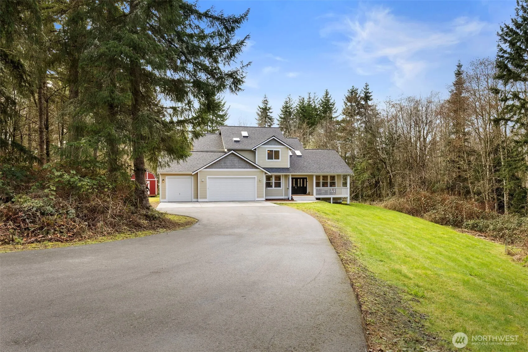 This stunning one-owner home on 8.79 acres blends modern comfort w/peaceful rural charm. Perfectly suited for commuters, multi-generational living, & anyone seeking space to enjoy the tranquility of rural living without sacrificing accessibility. Expansive acreage offers a multitude of opportunity incl private trails, bike paths & vast potential. With spacious, versatile rooms & generous indoor space, a wide range of needs & flexibility is met—including a downstairs den that adapts a lifestyle of remote work, hobbies or main floor living. Abundant natural light throughout. Stunning hardwood floors recently refinished, complemented by new carpet & professionally painted interior featuring a timeless designer palette. Heat pump for efficient year-round comfort & generator wired for peace of mind. Fiber optic service keeps you seamlessly connected. Enjoy the outdoors on the inviting front porch or 840 sqft Trex deck, complete w/a hot tub—perfect for entertaining or unwinding in privacy. The paved circular drive offers ease & elegance on arrival, while abundant parking provides room for guests, an RV, or boat. Spacious three-car garage w/dedicated workshop. New roof adds value & longevity, making this home truly move-in ready. Conveniently located just 3.5 miles from the Kingston Ferry Terminal w/service to Edmonds & Seattle. Nearby equine boarding stables, Point No Point, local shops, restaurants, trails & endless outdoor recreation—this property offers the best of PNW living.