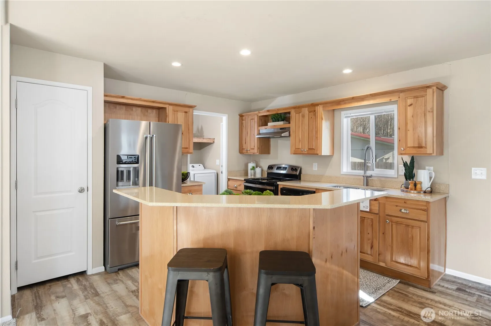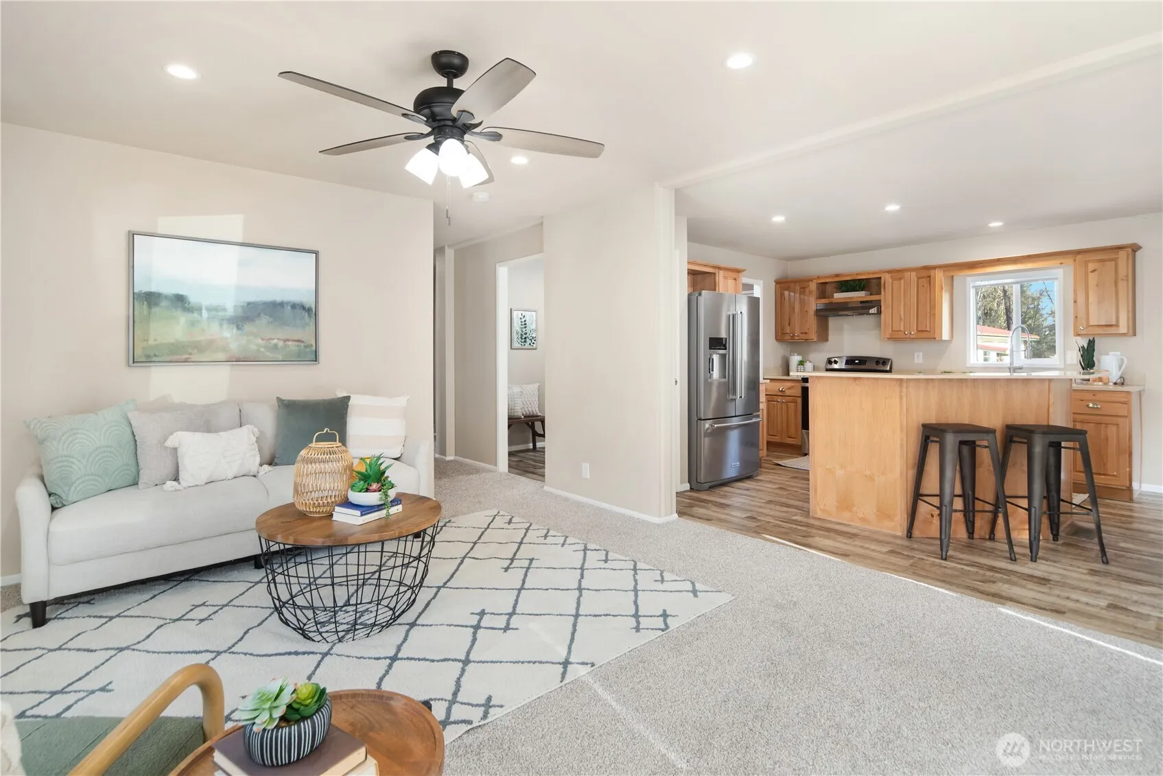 Freshly updated and move-in ready, this 1,333 sq ft home offers comfort, efficiency, and meaningful improvements throughout. The open-concept living area creates an easy flow, with 2 bedrooms including a primary suite featuring a walk-in closet and private bath. A versatile third room offers flexibility for a home office or guest space. Recent upgrades elevate comfort with a new Bosch heat pump, brand new carpet, fresh interior paint, newer kitchen appliances and a generator transfer switch for added peace of mind. Outside is where the property truly expands! The level, fully fenced backyard provides room to garden, relax, or entertain. A large shed with power, adds flexibility; ideal for projects, storage, hobbies, or workspace. Quiet location, and no HOA minutes to Port Townsend or Chimacum and Port Hadlock.