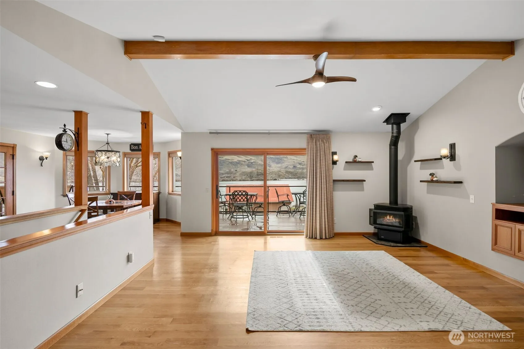 ***Seller offering a $10,000 Buyer Credit*** Breathtaking Columbia River views await in this meticulously updated 3,000+ sq ft custom home. River access with potential Boat Club membership allows usage of the launch, clubhouse, and docks. The inviting living room flows seamlessly onto an expansive deck, creating the perfect backdrop for relaxation. The interior features a remodeled kitchen with custom cabinetry and updated main-floor bathrooms, including a primary suite with cedar shelving closet. Downstairs, a versatile layout offers additional bedroom and office for dedicated workspace, and a unique semi-hidden storage room. The downstairs could be converted back into a small kitchen to possibly utilize as a rentable space or room for a live-in. The property is rounded out by a detached shop with a storage loft and ample RV parking. With a newer roof, furnace, and water filtration system, this home perfectly blends timeless riverfront charm with modern peace of mind.
