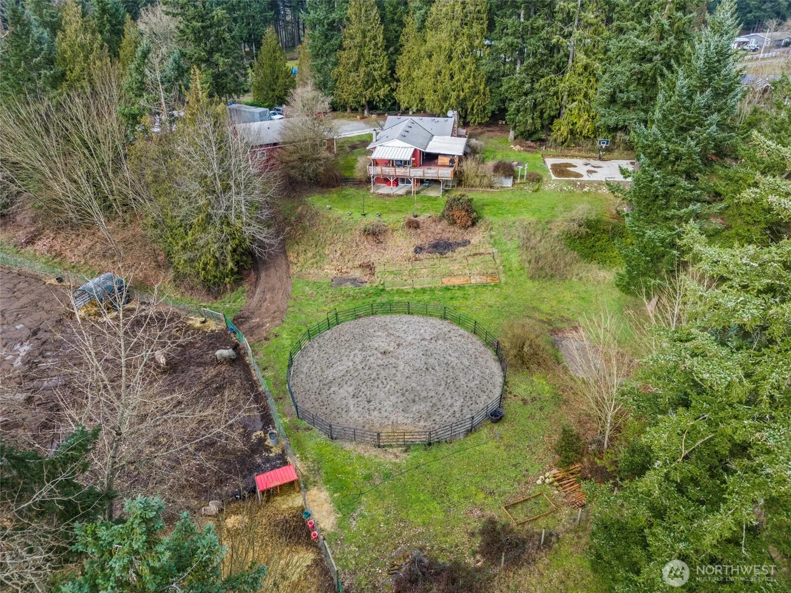 WOW! Don’t miss this 2.5 acre property, offering good country livin at the end of a quiet private drive. It checks all the boxes w/ two big shops & room for your horses, hobby farm & garden! This home offers main level living w/ a main-level Primary suite + a daylight basement w/ 3 additional bedrooms and bonus room. The entertainer in you will love the wrap-around, covered deck with access off the kitchen and primary bdrm. The massive, wrap-around deck overlooks the large sport court (Basketball & Pickleball), gardens, pasture land, & dog run. There is a ton of room here for all your hobbies or at-home business needs, including a Circle driveway with RV parking/hook ups & room for a dozen large vehicles. And the Well has a new water filtration system. IT IS A MUST SEE!!