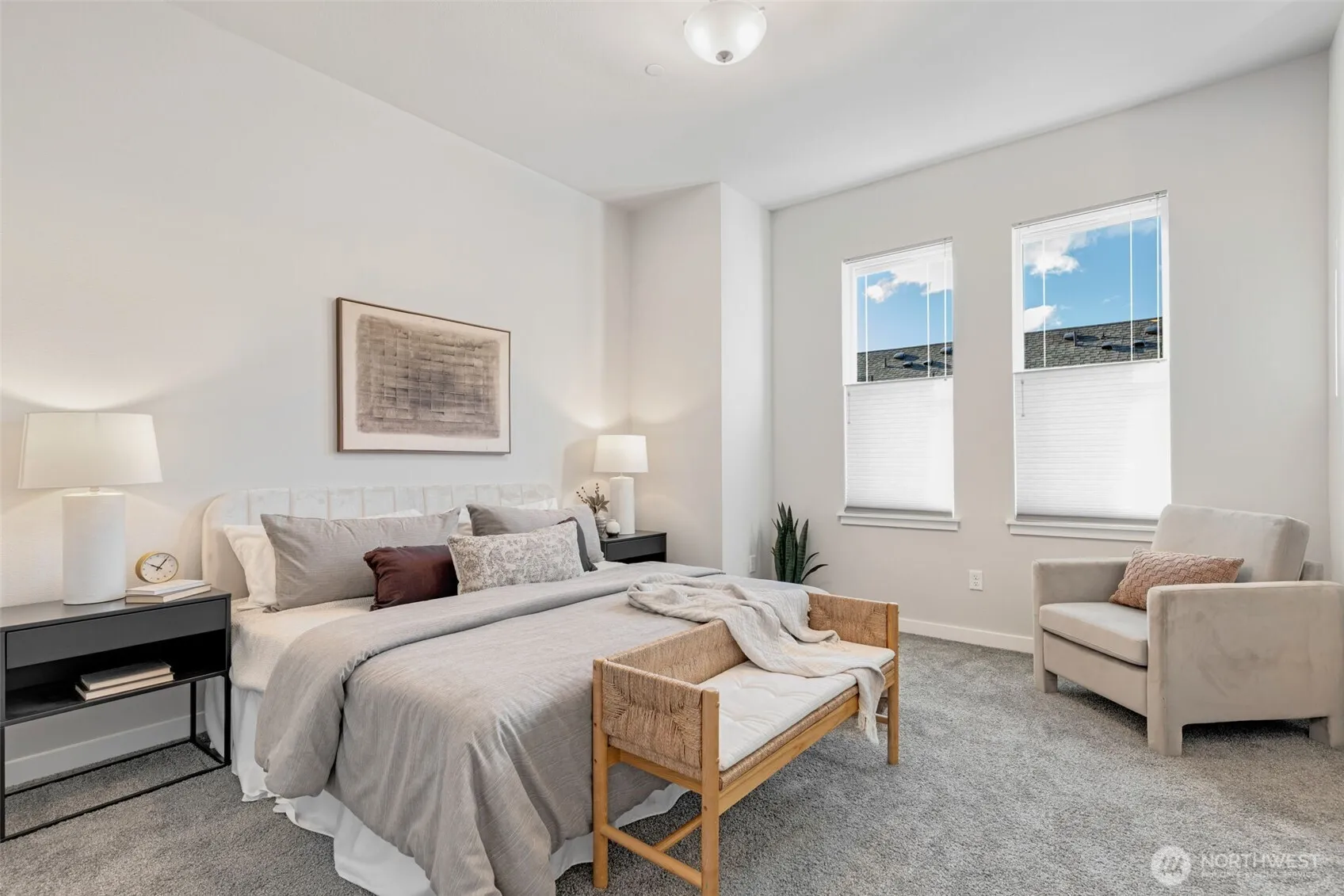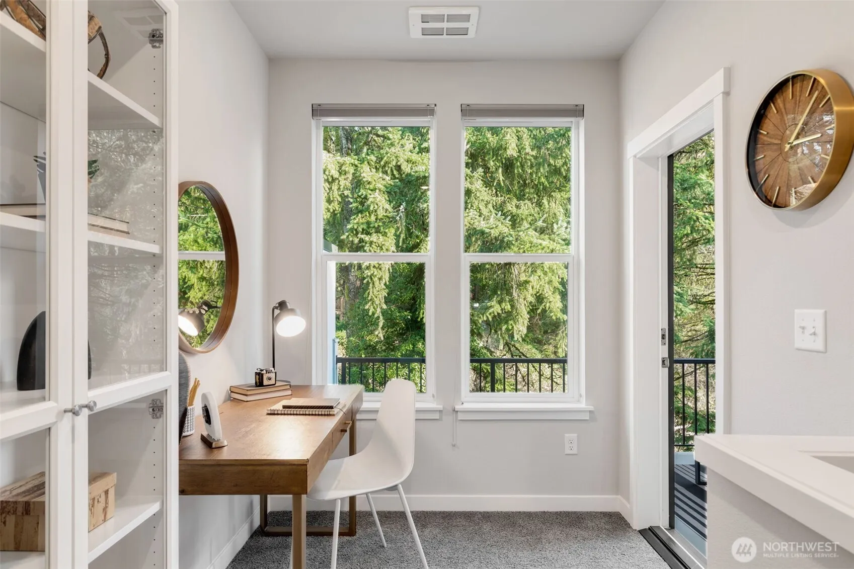 NOW OFFERED AT $835,000! Welcome to modern living in this beautifully designed 1,842 sq ft 2022 townhome located in the highly sought-after Northshore School District. This spacious 3-bedroom, 2.25-bath home offers bright, open-concept living with soaring ceilings, oversized windows, and stylish contemporary finishes throughout. The main level features luxury vinyl plank flooring and seamless flow between the living, dining, and kitchen spaces—perfect for everyday living and effortless entertaining. The chef-inspired kitchen is the heart of the home, complete with quartz countertops, stainless steel appliances, abundant cabinetry, and generous prep space. Upstairs, two spacious bedrooms with large windows share a well-appointed full bath with dual vanities. The top-floor primary suite provides a private retreat with an ensuite bath, dual closets, and a versatile office or reading nook just outside the bedroom—ideal for working from home. Additional highlights include a tandem two-car garage with excellent storage and EV charging capability. Enjoy peaceful territorial views from the rooftop deck overlooking a serene wooded backdrop. Ideally located just minutes from downtown Bothell, the Burke-Gilman Trail, and Lake Washington, with convenient access to Highway 522 and I-405 for an easy Eastside or Seattle commute. This home offers the perfect blend of modern comfort, thoughtful design, and low-maintenance living in a prime Kenmore location.