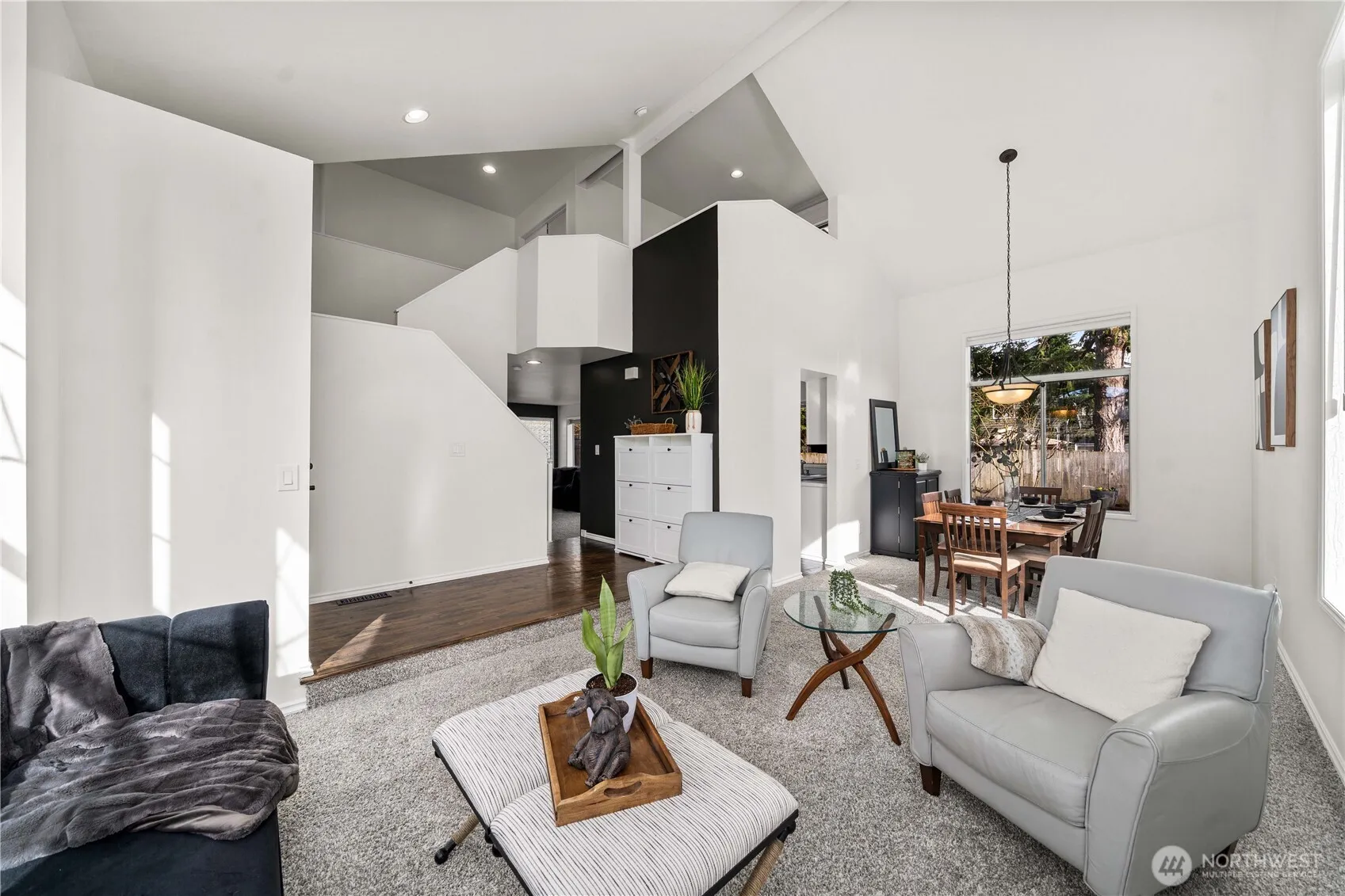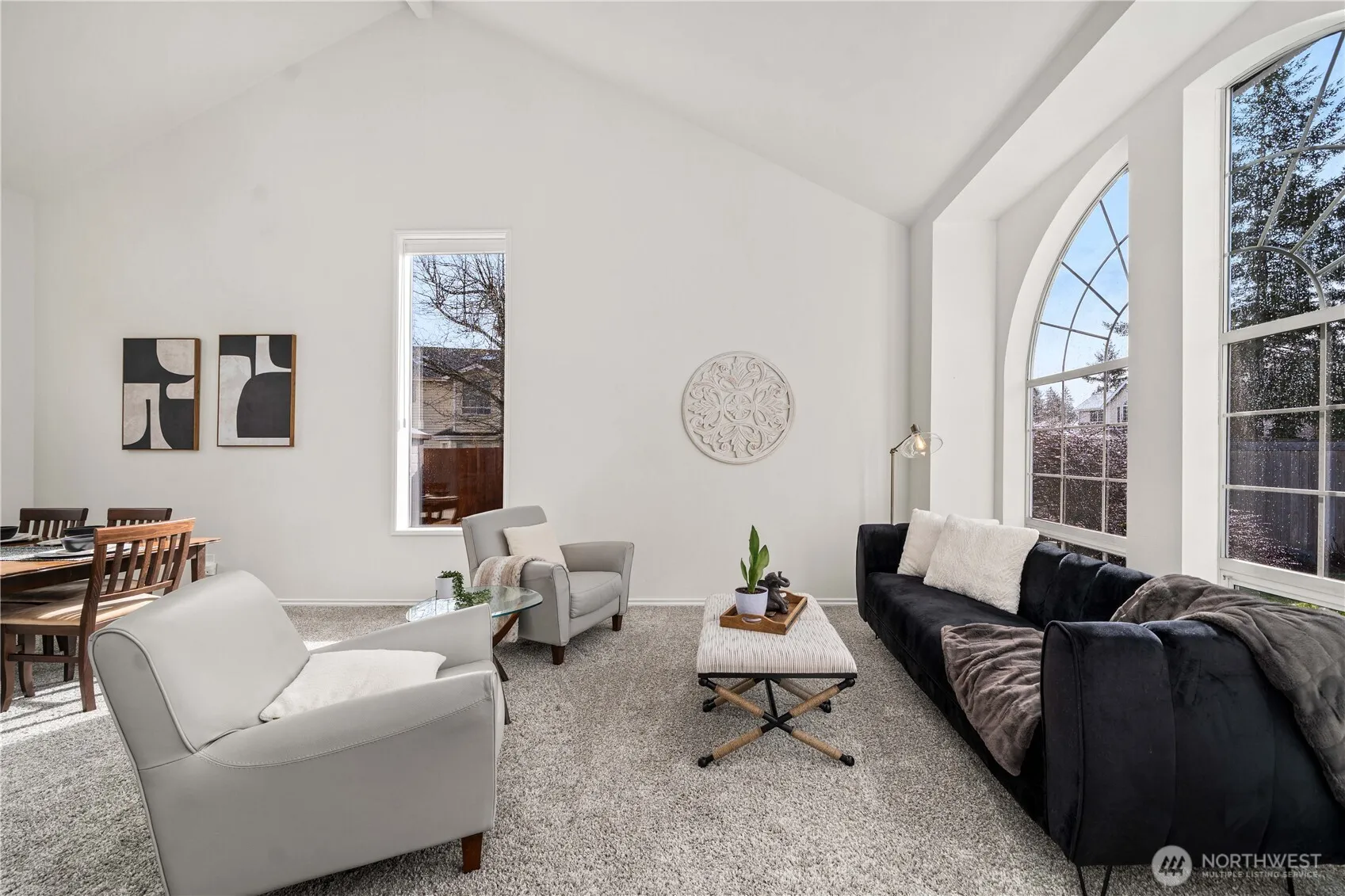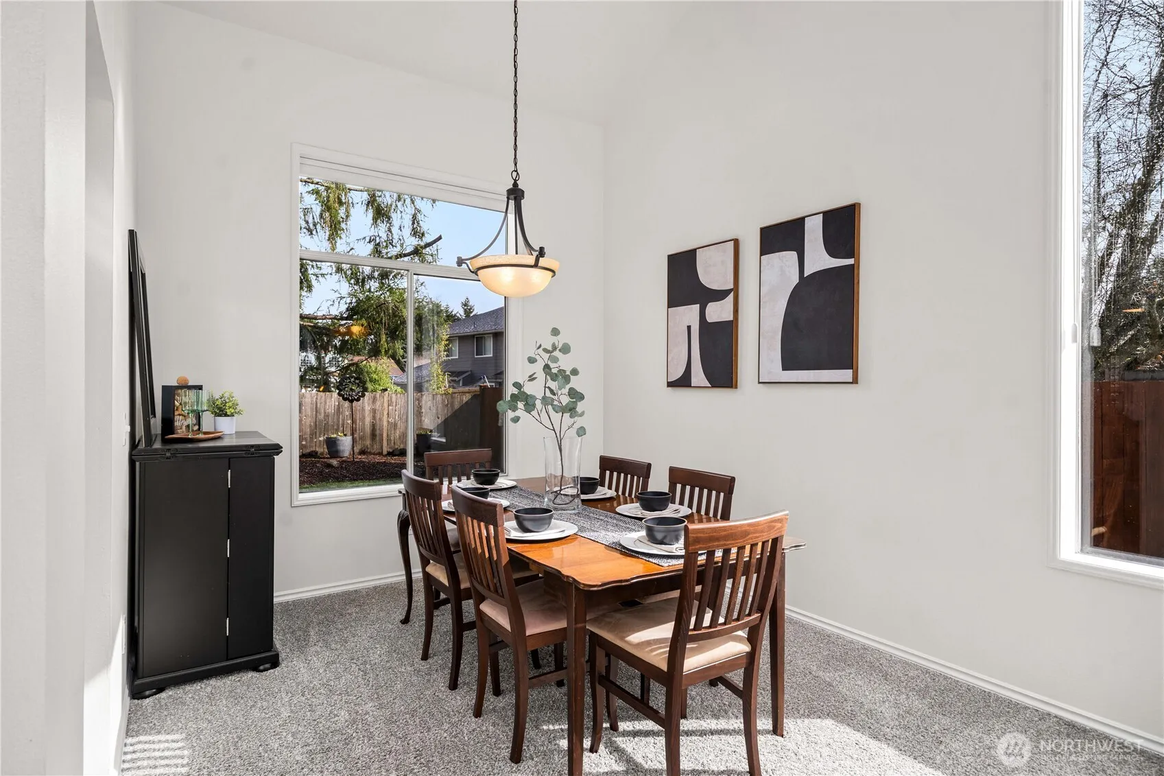 Welcome to Rosewood Park, a wonderful community nestled in the heart of Maple Valley within walking distance to Glacier Park Elementary, Tahoma High School, Summit Park, and the Cedar River Trail. Situated on a quiet cul-de-sac, this beautifully maintained and thoughtfully updated home offers inviting curb appeal with newly painted exterior, cedar siding on the south side replaced recently, and a fully fenced backyard providing privacy and space to relax. Step inside to soaring vaulted ceilings and large windows that fill the home with natural light. Newly painted interior, hardwood flooring, and newer carpet create a warm, move-in ready environment. The bright white kitchen features stainless appliances including a new range and a window view overlooking the yard. Just off the kitchen, the cozy family room with a new gas fireplace (2025) creates the perfect space. Sliding doors lead to an expanded patio, ideal for entertaining or enjoying the outdoors. Upstairs, the beautifully remodeled bathroom showcases a frameless glass shower and updated vanity with quartz countertop. A versatile bonus loft offers additional living space. The primary suite includes an 5-piece attached bath and a double closet. While an additional bedroom features vaulted ceilings and large windows. Luxury vinyl plank flooring runs throughout the upper level. Additional updates include a tankless water heater and roof replacement around 2012. Located within the highly regarded Tahoma School District.