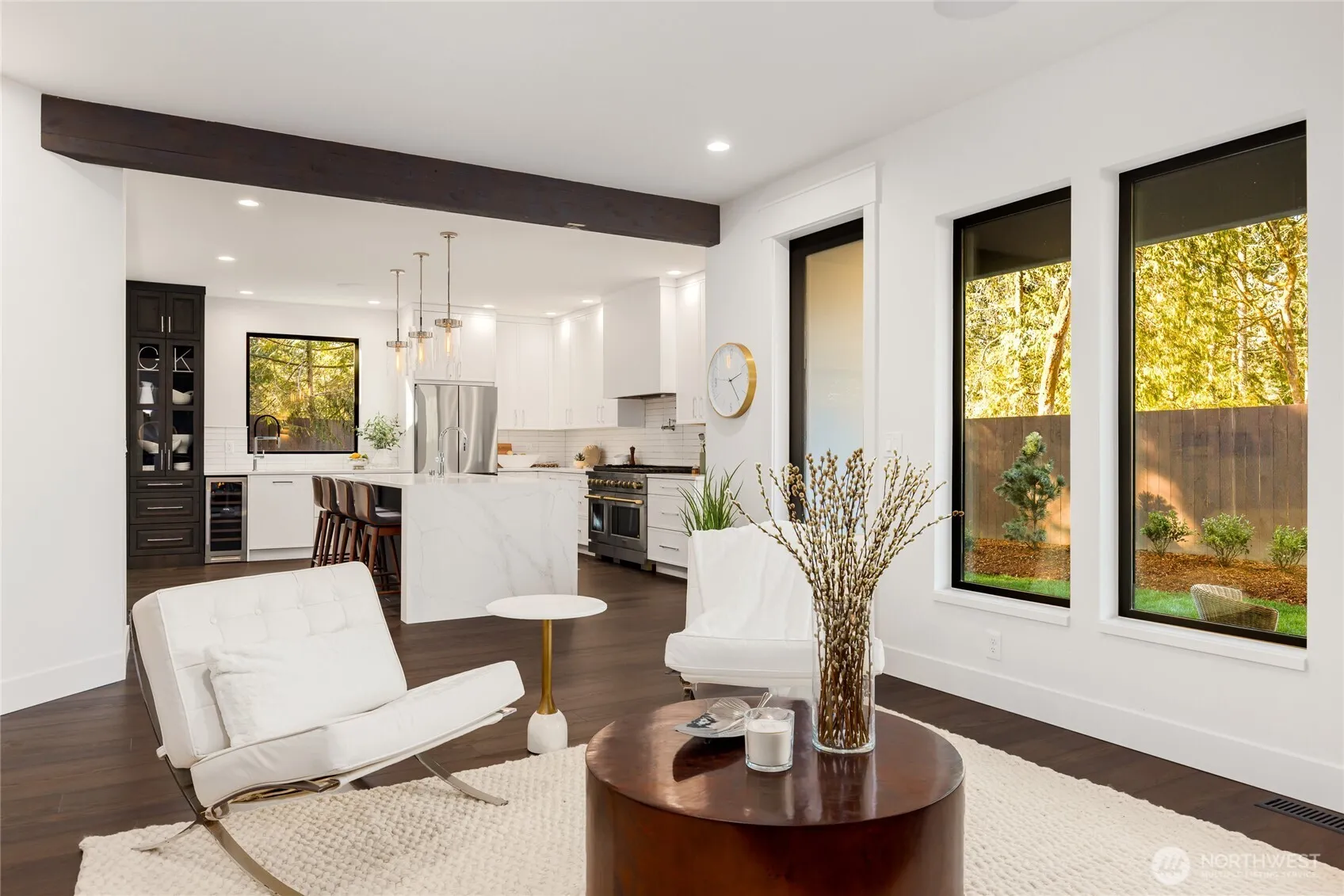 The Wellington – One of 12 custom luxury homes of The Bradford Collection by Connie Kay Design, an old-world brick English Tudor—rich, dark, and commanding on the exterior, unfolding into light-filled interiors made for modern living. Known for timeless architecture and meticulous attention to detail, Connie Kay homes transcend ordinary production builds. An impressive two-story entry welcomes you into spaces shaped by intention, where a Z-Line chef’s kitchen, custom finishes, and dual patios, create a seamless balance of beauty and function. Handcrafted millwork with solid core 8’ doors, Restoration Hardware lighting, and refined architectural details quietly tell a story of craftsmanship throughout. Serene peekaboo views of the Puget Sound from the family room create an unexpected moment of beauty, enhancing the home’s tranquil ambiance. Generous living spaces are complemented by spa-like bathrooms on the main floor. The upstairs primary suite showcases a fabulous bath with a luxurious soaking tub, and an unthinkably large custom walk in closet.