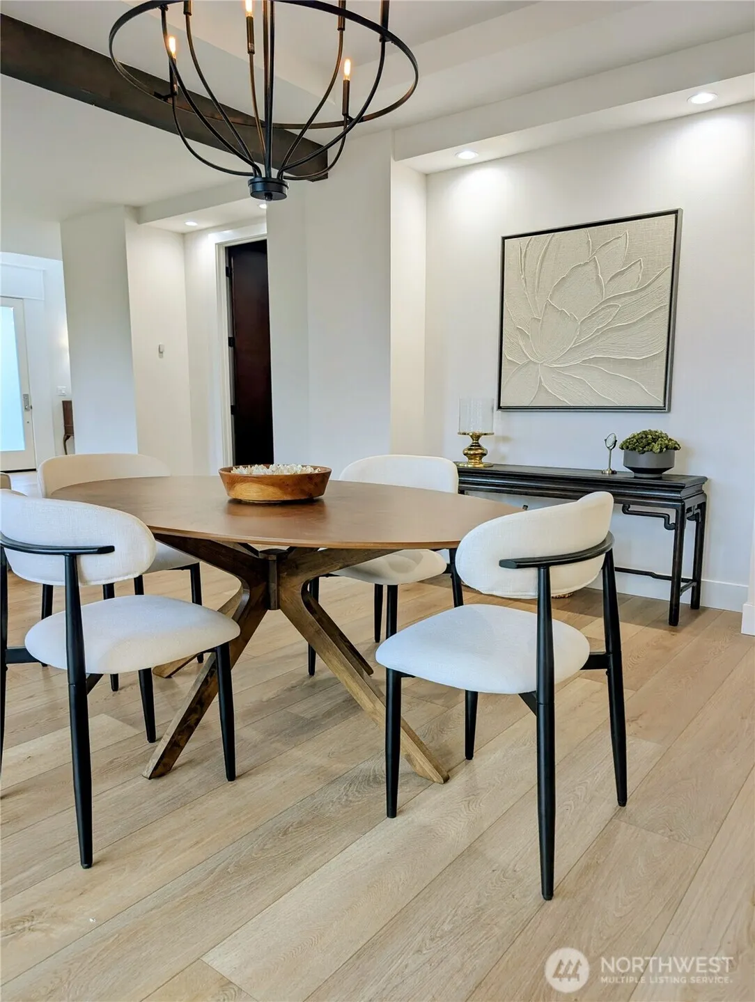 The Gabriel, by Connie Kay Design, is a distinguished new-construction residence within the exclusive Bradford Development—a boutique collection of 12 luxury homes. This French-inspired home showcases elevated craftsmanship, refined finishes, and an exceptional level of detail that sets it beyond standard construction. The custom walnut staircase bridges the towering foyer and crystal chandelier, creating awe from the moment you arrive. The kitchen is a statement of form and function, featuring soft-close custom cabinetry, a prep sink, pot filler, high-end appliances, custom walnut hood, large island, and generous walk-in pantry. An expansive wood-wrapped covered patio, complete with skylights, makes for effortless entertaining. The main level’s exposed beams and abundant natural light combine with a sophisticated layout including a walnut-paneled home theater with under-cabinet beverage cooler, a bedroom with en-suite bath, and one of two conveniently located utility/laundry rooms. Upstairs, the primary suite hosts dual walk-in closets and French doors opening to a private balcony with a peekaboo water view. The bathroom showcases rich forest views, a luxurious tiled shower, a large soaking tub, and custom cabinets with toe-kick lighting. With exceptional attention to design, the craftsmanship of this home defines.