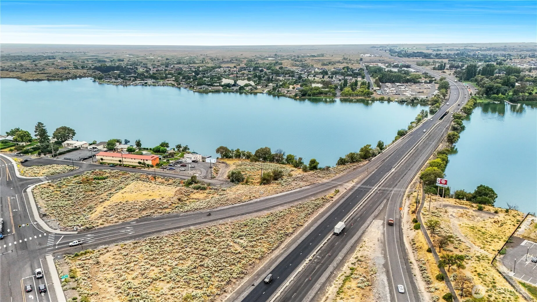 Prime waterfront commercial opportunity in Moses Lake, WA with exceptional I-90 visibility and high daily traffic exposure. This vacant lot offers a rare combination of commercial zoning, freeway access, and lakefront positioning, making it ideal for a wide range of development opportunities including retail, restaurant, or professional services. Positioned to capture attention from thousands of commuters and travelers daily, this site delivers unmatched exposure in one of Moses Lake’s most active corridors. Utilities are in place with electricity on-site and water in the street, supporting future development potential. A unique opportunity to secure a high-visibility commercial waterfront property in a growing Central Washington market.