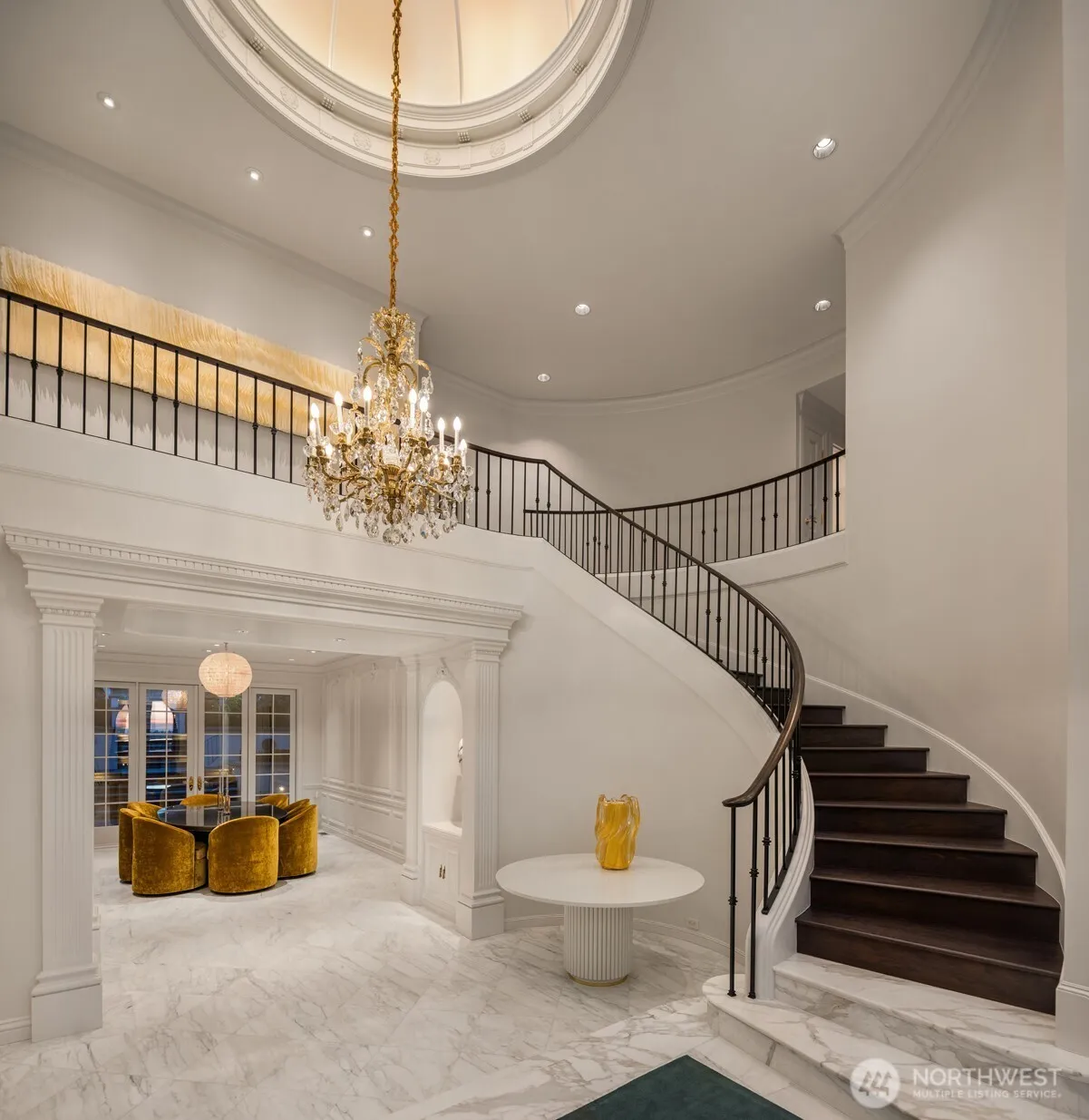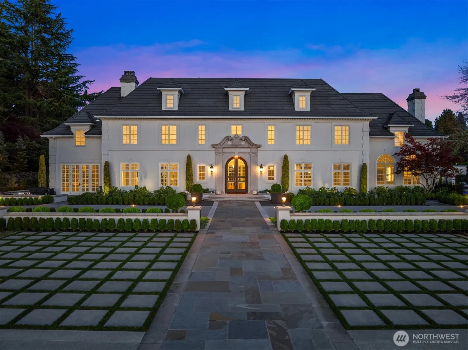 Extraordinary Chateau in the heart of Clyde Hill – a gated 1.5-acre private estate offering rare scale, privacy, and presence just minutes from Downtown Bellevue. Inspired by classic French architecture, the home was extensively renovated over three years to preserve its original character while introducing modern comfort and livability. Sweeping views of Lake Washington, the Seattle skyline, and the Olympic Mountains create a remarkable backdrop. Interiors by Susan Marinello feel refined yet welcoming, blending timeless detail with clean, updated finishes and integrated technology throughout. The grounds are equally impressive, with symmetrical gardens that bring structure and balance to the property. A new resort-style pool and spa with Baja deck, automatic cover, and dedicated equipment room elevate the outdoor experience. A resurfaced tennis and pickleball court, pavilion, and inviting gathering spaces complete the estate. The gated entrance and established trees reinforce a tranquil, secluded character. Designed by Gelotte Hommas Architecture with landscape vision by Dar Webb and Benchmark NW, this is a rare Clyde Hill estate where architecture, setting, and craftsmanship come together.