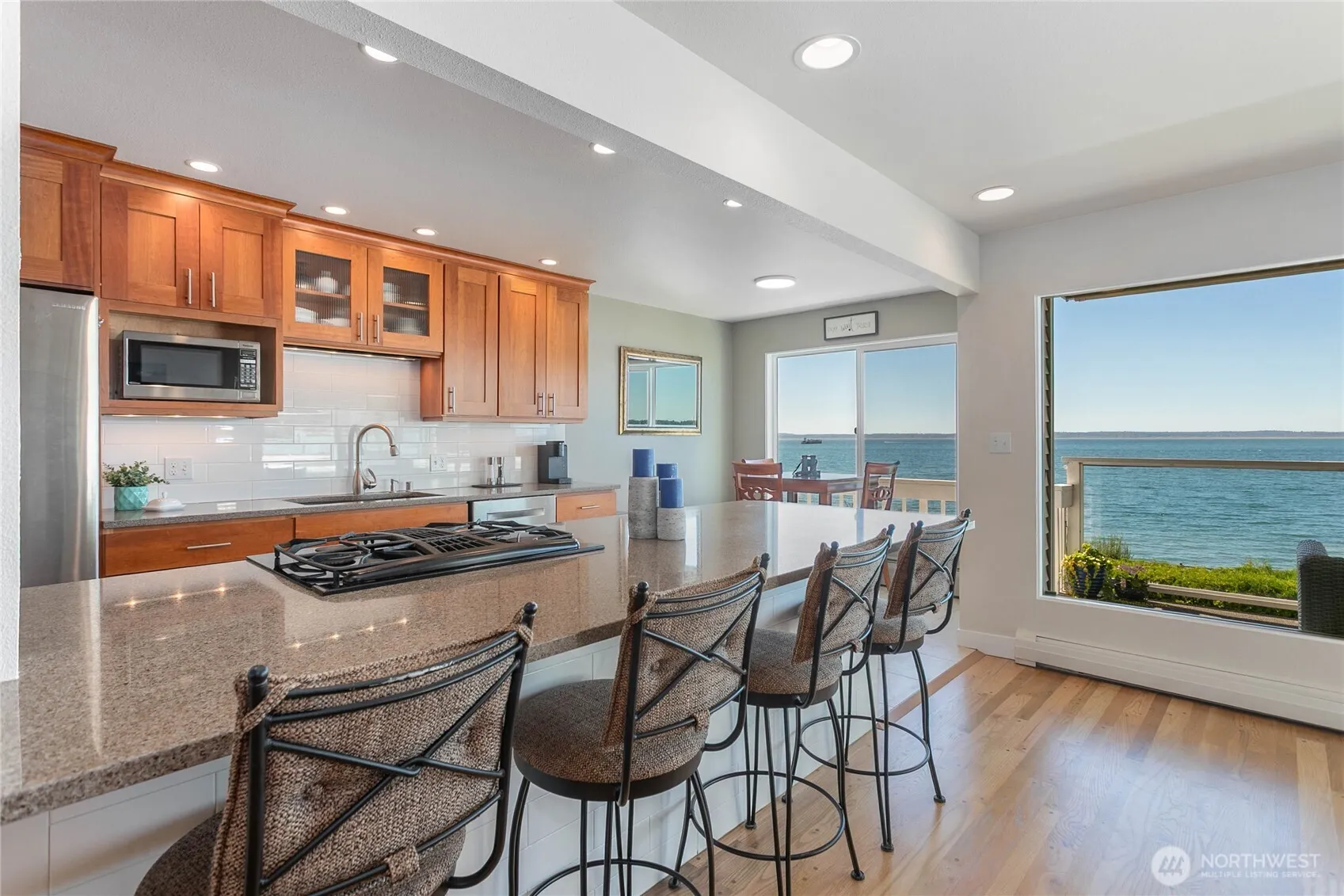 Fully remodeled main floor single-level condo with clear unobstructed views of San Juan Islands, Bellingham Bay, Canadian mountains, boat traffic, wildlife and more. Not only does your covered deck overlook Bellingham’s most popular park and trail hub, you can step right off condo property into Boulevard Park for unmatched access! Recently remodeled, this 1,200 sqft unit features: primary bed w/ ensuite, bright/open kitchen & living room, refinished hardwood floors, gas fireplace, new deck railing & glass, additional storage and 2 covered parking spots. Short walks between historic Fairhaven & vibrant downtown Bellingham are right out your front door. Endless sunsets and everchanging seasonal views are calling you. Must see in person!