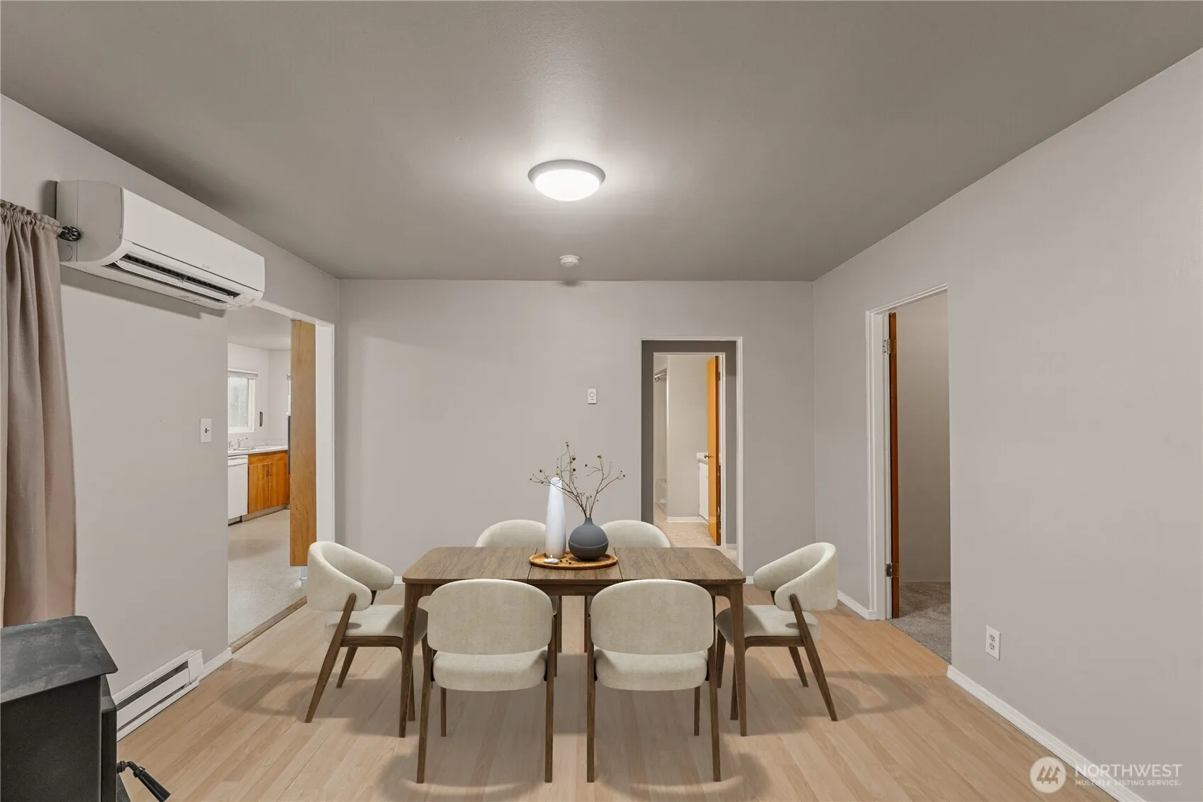 Great Aberdeen home with solid updates and space to spread out! This 3 bedroom, 1 bath home offers ~1,500 sq ft of comfortable living on a ~6,250 sq ft lot. The home has been refreshed with new paint inside and out and features a welcoming tile entry, a generous eat-in kitchen, and efficient heating with a ductless heat pump and pellet stove. A large utility room/mudroom offers everyday convenience. The rear breezeway leads to a two-car garage with an attached carport, creating plenty of covered parking and storage space. A well-rounded home in a convenient Aberdeen location with room to enjoy inside and out!