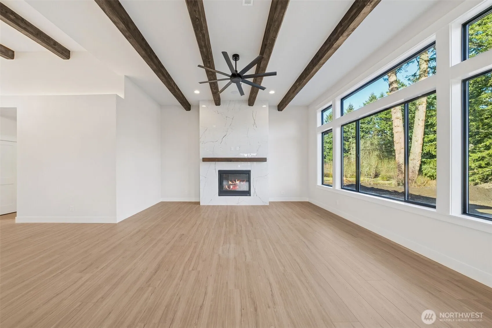As low as 3.375% interest rate. Terms and conditions apply. Built by Stennes Homes. This spectacular custom home on 2.07 Acres has modern upgrades throughout! Grand entry, chandelier, & custom walls! Open living W/gas FP ft. tile surround W/Doug Fir mantle & dbl slider to patio! 10ft ceilings on main and exposed 8×8 Cedar beams! Chef’s kitchen W/quartz counters, full height back splash, Boxwood cabinets in Charcoal W/42” uppers & Crown Molding, SS appliances including Forno 36” gas range! Primary W/vaulted ceiling, HUGE WI closet & spa-like bath W/quartz counters, free-standing soaker tub, & floor to ceiling shower! 3 addtl bdrms & full bath w/dual sink vanity! Sonos sound syst. Back patio with gas firepit! Detached 1,584 Sq Ft shop/garage!