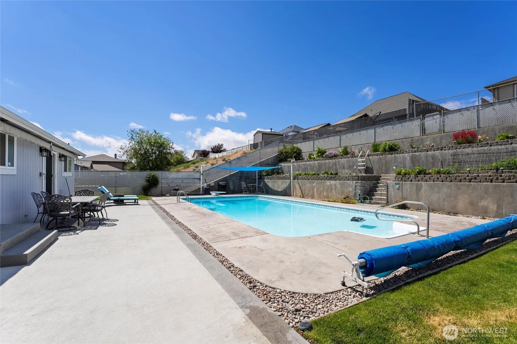 POOL HOME! BRAND NEW ROOF! Ready for summer fun, this home offers a private backyard with a swimming pool, park-like atmosphere, and stunning, unobstructed lake views. There’s plenty of parking available and so much more to discover! The main level features three bedrooms and two bathrooms—including an en-suite—as well as a dedicated office area. The kitchen boasts custom cabinets and chiseled-edge granite countertops. Downstairs, you’ll find a spacious bonus room with another full bathroom. Both the kitchen and the en-suite open directly to the backyard and pool. A specially textured concrete patio adds both style and practicality. You’ll enjoy mature landscaping, fruit trees, vegetable gardens, an extra-deep three-car garage, RV parking, and all appliances included. Truly turnkey—your paradise awaits!
