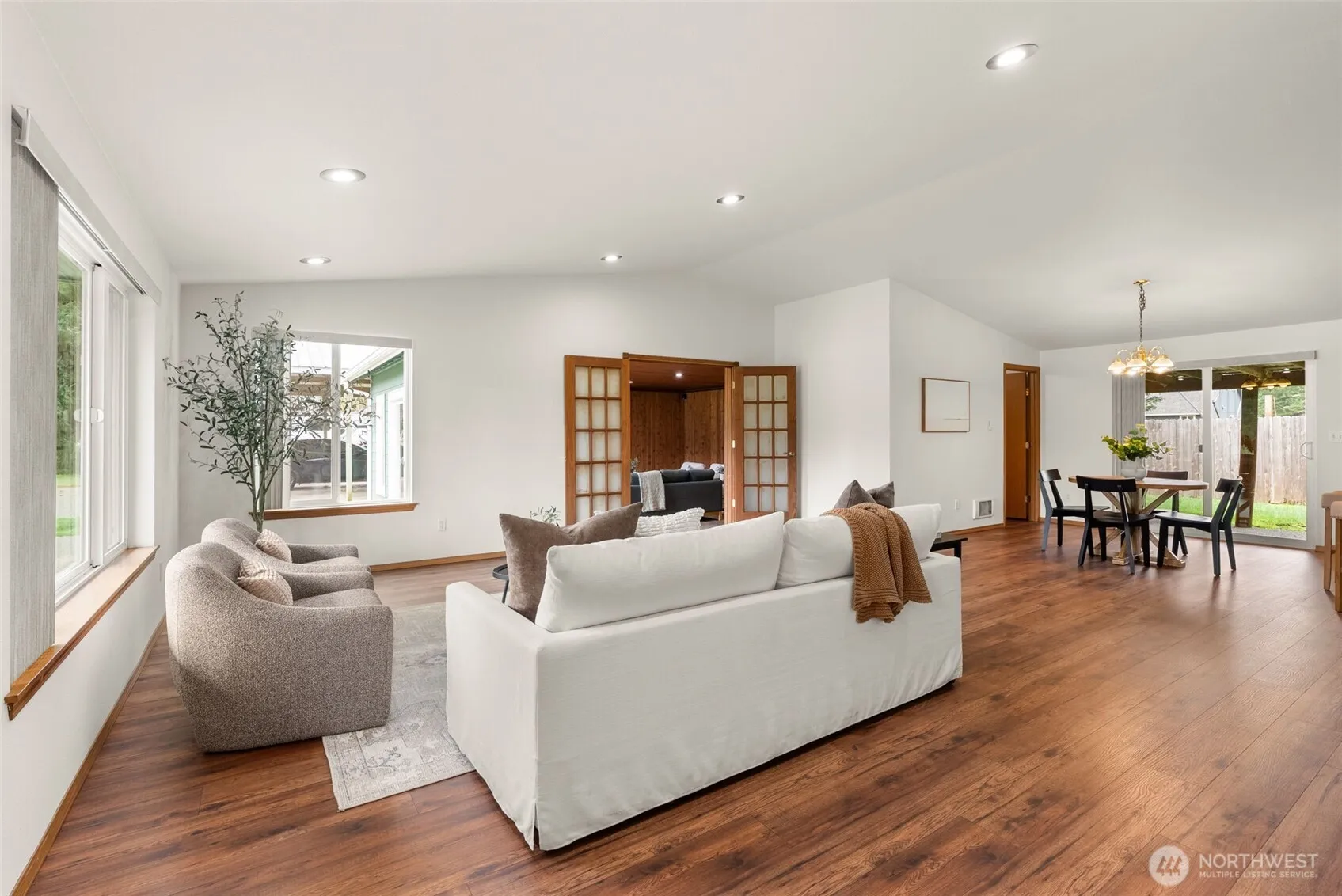 Set on a peaceful 6.75+/- acres of beautiful land, this well-maintained and refreshed home offers flexible living with 3 bedrooms and an additional room ideal for a home office, gym, or guest space. New paint inside and out and fresh flooring adds a modern touch throughout, while two separate living spaces and the open kitchen with walk-in pantry provides plenty of room to relax or entertain. The primary bedroom features its own private full bath, complemented by a second spacious full bathroom for guests or household use. Outside, the property truly shines with multiple fenced pastures and a detached shop/garage with an additional covered parking area – perfect for all your adventures. Enjoy the space and privacy of rural living with room to grow, and convenient access to I-5 and town.