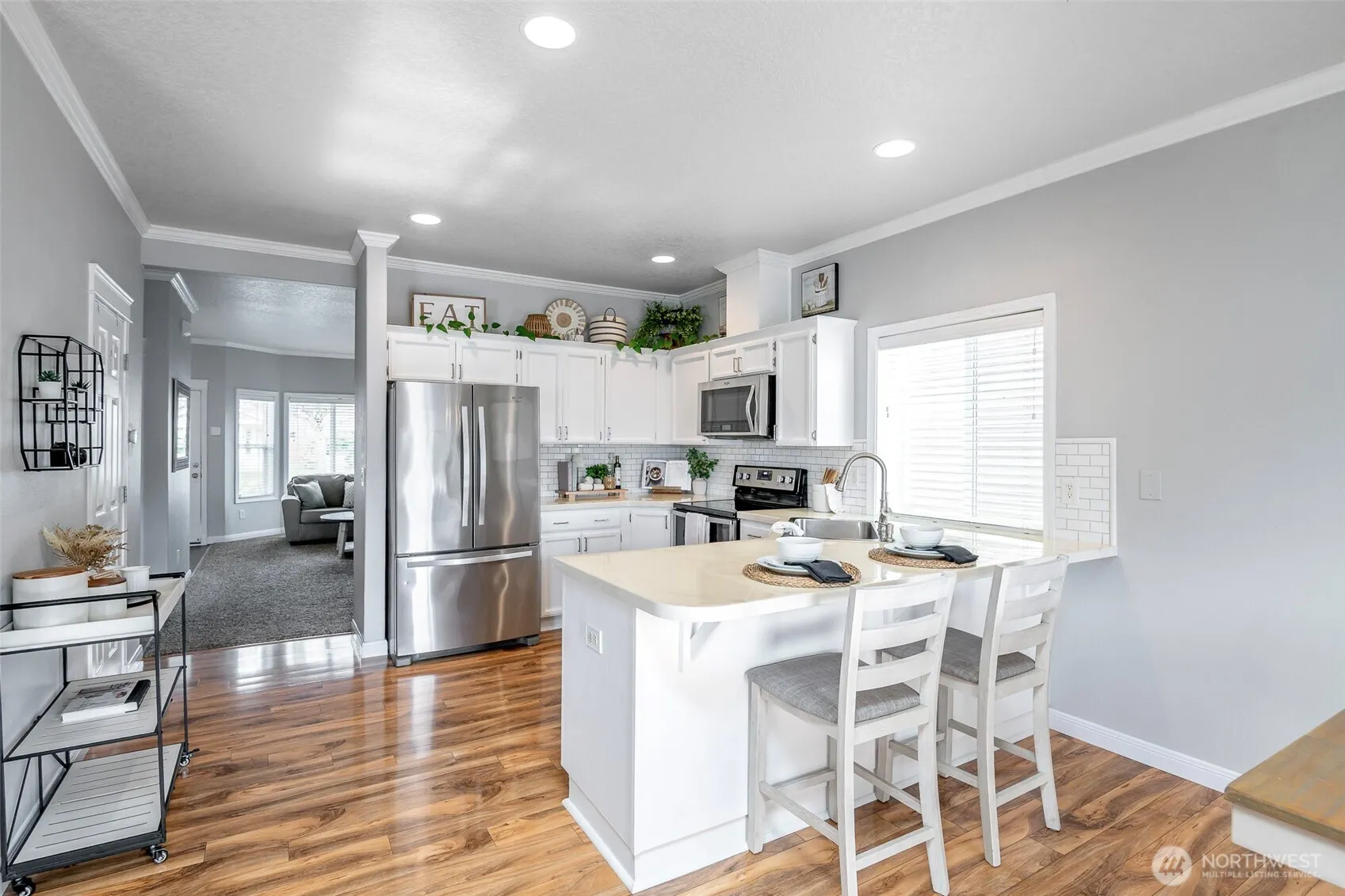 *Buyer backed out at no fault of the seller* 3.625% VA ASSUMABLE RATE !! This home in the highly desirable Raili May community welcomes you with a custom entry coat rack and flows into a bright and elegant formal living room with crown molding to the ceiling and a cozy gas fireplace. The gourmet kitchen is a chef’s dream, featuring a full-height tile backsplash, stunning quartz counters, white cabinetry, and sleek stainless steel appliances. The adjacent dining area offers easy access to the deck for seamless indoor-outdoor living. The spacious family room is perfect for relaxation, complete with a ceiling fan for added comfort. The primary suite is a true retreat, with a charming window seat offering extra storage, vaulted ceilings, and a stylish barn door entry to the 5-piece master bath. Two additional bedrooms and a full bath provide ample space, while the utility room includes extra storage for convenience. Enjoy year-round comfort with central A/C and brand-new carpet upstairs. Step outside to a private backyard — perfect for enjoying peaceful outdoor moments. A perfect blend of style, functionality, and comfort, in an unbeatable location!