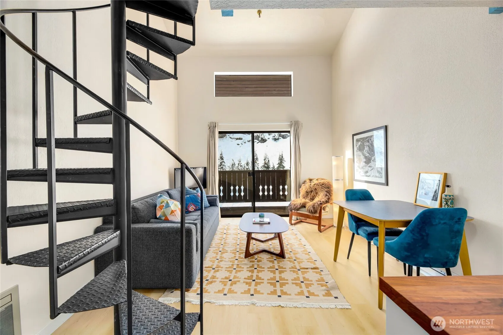 Ski right back to your condo!! Steps from the ski lifts at Alpental this coveted studio loft is the layout you have been waiting for. West facing gets all the natural light, second floor provides mtn views, warm floors and high ceilings with loft.Tastefully updated, new flooring, kitchen, appliances, bath, and paint. Bunks in entry provide extra sleeping, storage or office space. Private loft creates a primary bedroom space with room to work, stretch, exercise or just relax after a long day on the slopes. Private deck with views of the mountains. Condo community has hot pool, sauna, parking in secure garage, garden area, fire pit, cascade mountain views and located right on the head waters of the South Fork of the Snoqualmie River.