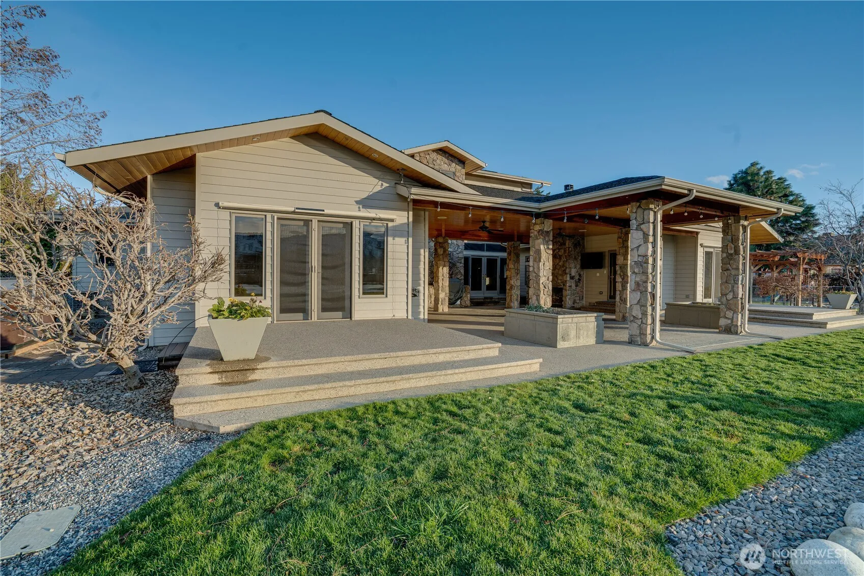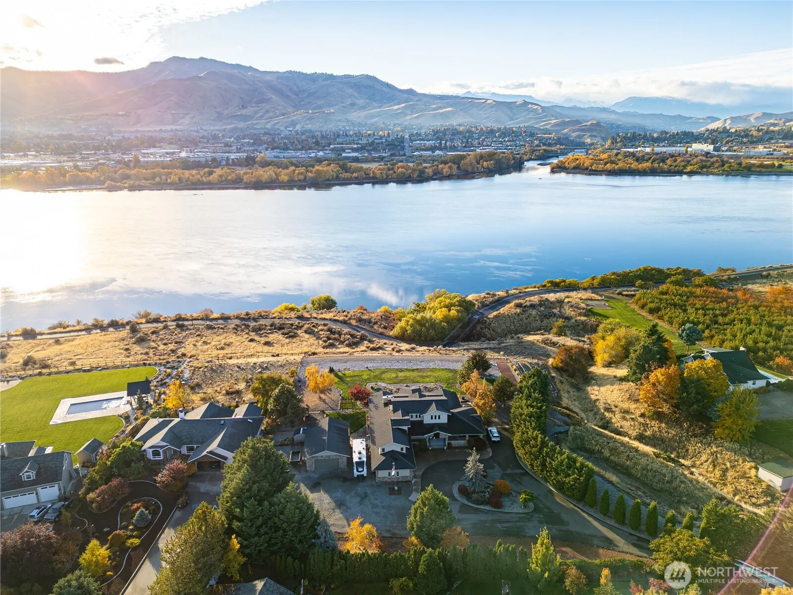 Welcome home to one of East Wenatchee’s rarest offerings. This exceptional property fronts the Apple Capital Loop Trail & delivers an infinity-edge feel as it overlooks the Columbia River & Enchantment Mountains! The lot has an estately feel w/a looped driveway & tons of parking including RV parking. With 1,668 square feet of garage space, there is plenty of room for hobby toys or have an epic workshop in the detached shop. This home boasts one of the largest covered outdoor living spaces East Wenatchee has to offer—perfect for taking in the breathtaking views. Inside, the kitchen was extensively renovated showcasing high-end appliances & a massive island! The laundry room is shared w/a HUGE walk in pantry. Primary bedroom on main floor.