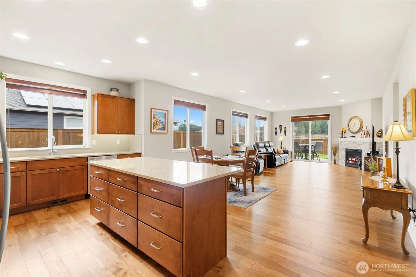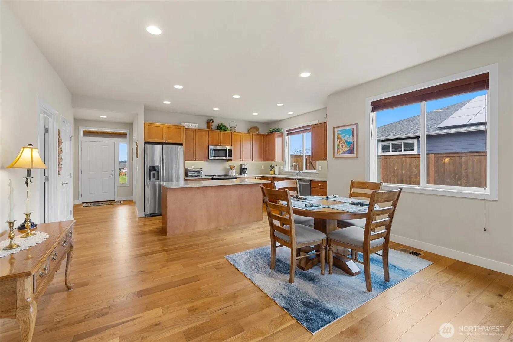 Exquisite custom home in the highly desirable Olympic Crest neighborhood. This one level, open concept layout features a den/ office near the entry, spacious kitchen with a large island ideal for easy movement and cooking up your favorite dish. The backyard is set up with a beautiful patio, fully fenced and peaceful views of fields of green. This home is ideal for relaxing or hosting guests. Enjoy a prime location just a short distance to the John Wayne Marina, Discovery Trail and Carrie Blake Park with charming downtown nearby for access to recreation, shopping or dining.